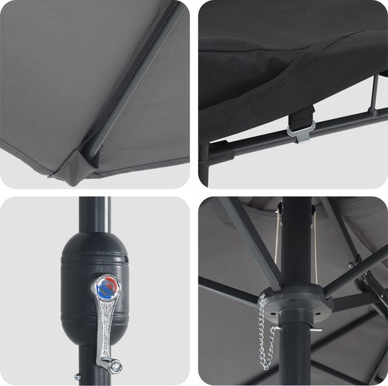 Parasol de jardin en porte-à-faux avec mât en aluminium vidaXL | Leroy 1 x Parasol de jardin, EAN: 8721158856272, SKU: 42003277, Brand: vidaXL Parasol 3 Tete Parasol De Jardin Anthracite 385 X 209 X 244 Cm Tissu | Leroy Merlin Parasol Manivelle Pliable Contenant de la livraison: Rectangular offset multi-part parasol MELHIA Anthracite Hespéride... Banquette 3 places,canapé-lit en tissu polyester gris foncé avec pieds... Cette fonctionnalité garantit que les utilisateurs peuvent rapidement ajuster la position du parasol, optimisant l'ombre et minimisant l'effort requis pour le montage. 【 Design Moderne :】 Caractérisé par des lignes épurées et un minimum d'ornementation, le parasol de jardin complète les espaces extérieurs contemporains. Que ce soit pour ranger le parasol à la fin de la journée ou pendant les saisons hors-saison, sa pliabilité garantit qu'il occupe peu d'espace, le rendant pratique pour les maisons avec un espace de stockage limité. Dimensions globales: 385 x 209 x 244 cm (L x l x H), Pliable Cette fonctionnalité est particulièrement utile pour protéger les zones de repas ou de détente lors des journées ensoleillées, assurant confort et utilisation tout au long des chaudes étés. Couleur: Anthracite, Matériau: Tissu
