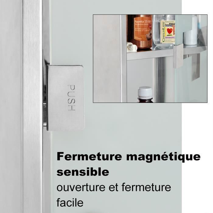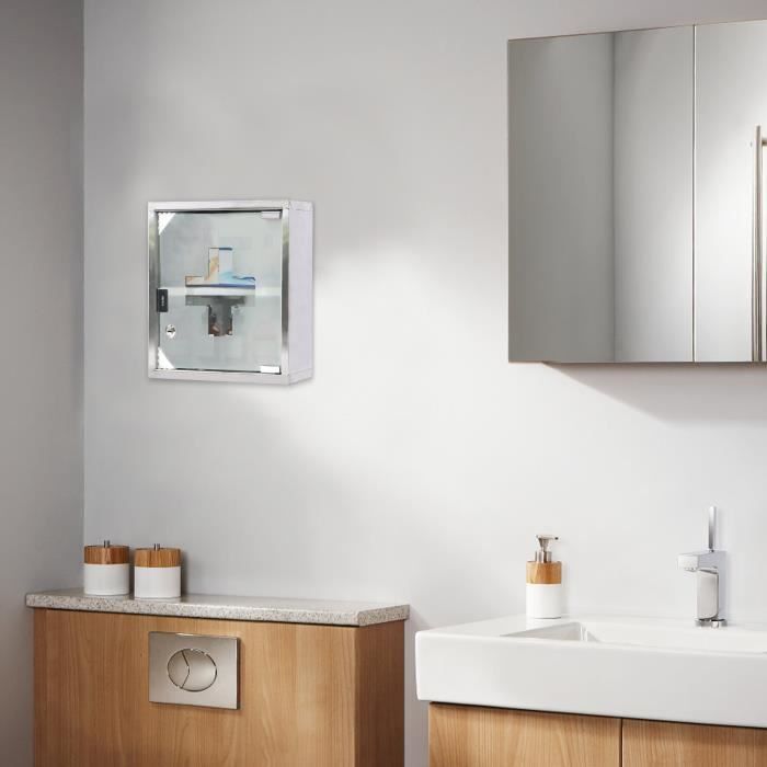 Armoire à pharmacie - AUFUN - Modèle 30x12x57.5cm - Acier inoxydable Armoires À Pharmacie - Armoire Clé Acier & Verre - Blanc - Maison Rangement Médicaments Sécurisé Armoire à Pharmacie 2 étagères 3 Niveaux 20L X 12l X 58H Cm Porte Verre Trempé Armoire Médicament Acier Inoxydable Matériau en acier inoxydable de haute qualité : fabriqué en acier inoxydable de haute qualité avec une excellente durabilité et résistance Le matériau en acier inoxydable garantit une utilisation à long terme sans rouille ni corrosion. Il s'agit d'une caractéristique de sécurité importante pour protéger les enfants et les animaux domestiques dans l'appartement de l'accès aux médicaments. Armoire à pharmacie murale en acier inoxydable avec porte en verre dépoli et serrure, idéale pour stocker médicaments et produits de premiers secours en toute sécurité.Cette armoire à pharmacie en acier inoxydable allie sécurité, durabilité et design moderne pour un rangement optimal de vos médicaments. Sa porte en verre dépoli, ornée d'une croix de premiers secours, permet une... Verrouillable : l'armoire à pharmacie est équipée de 2 clés pour empêcher l'accès aux médicaments par des personnes non autorisées. Facile à installer et à utiliser : installation facile avec les matériaux fournis. Il est idéal pour une utilisation à la maison, au bureau, à l'école ou dans d'autres pièces. Il dispose de trous de montage pré-percés à l'arrière pour un montage mural facile.