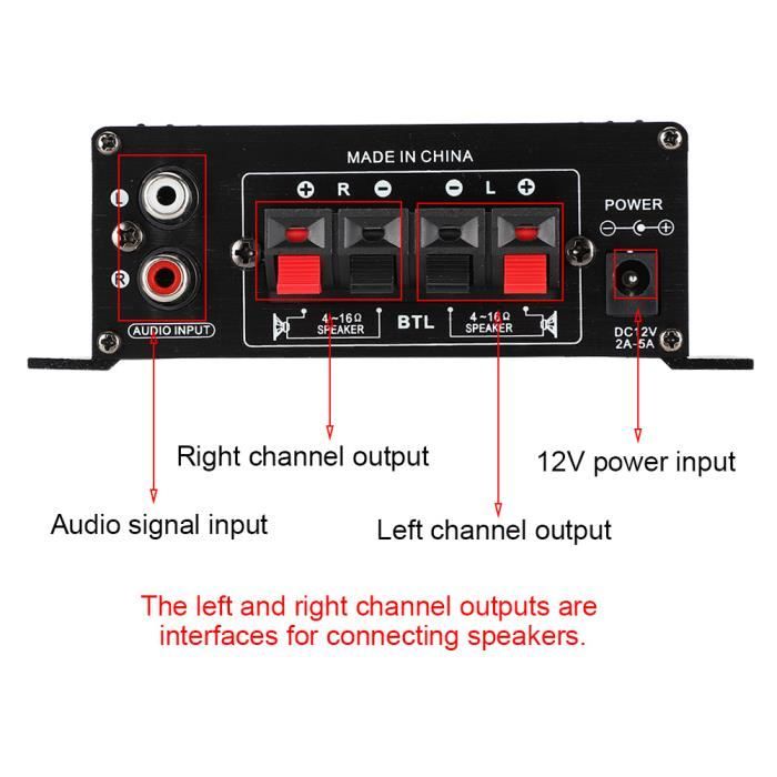 Ampli Pour Enceintes DIY Amplificateur De Puissance Bluetooth 20W + 20W, 2 Canaux Haut Parleur Numerique Stereo Lecteur Audio Dc8 24v 92220700 Récepteur Audio Sans Fil Bluetooth 5.0 HIFI-Amplificateur, Mini récepteur amplificateur audio stéréo Bluetooth... Bt-298a Mini Amplificateur De Puissance Audio 2ch 300w + 300w Pour L'amplificateur de puissance prend en l'entrée disque U, l'entrée AUX et l'entrée carte son. Douk Audio HiFi Bluetooth 5.0 Amplificateur de puissance numérique... Petite taille, facile à transporter et à ranger, pratique à utiliser et avec de bonnes performances. 15 mètres / 49,2 pieds (non obstrué)Nombre de canaux : doubles canaux gauche et droit (stéréo)Haut-parleurs adaptés : 10 W-200 W 4Ω 8Ω 16ΩMécanisme de protection : protection de connexion inversée de puissance, court-circuit protection contre la surchauffe, auto-récupérationTaille : env. Super compatibilité, peut être largement utilisé dans diverses tablettes, téléviseurs, téléphones intelligents, ordinateurs portables avec fonction Bluetooth, etc. Spécification :Type d'élément : Amplificateur de puissance BluetoothMatériau : AluminiumCouleur : BleuModèle : XY-KA15HTension d'alimentation : DC8-24V (le (plus la tension est élevée, plus la puissance de sortie est élevée)Puissance de sortie : 20 WCanal : 2 canauxVersion Bluetooth : 5., 0Fonction Cool : prend en le contrôle Sinilink-APP Mode d'entrée : Bluetooth + AUX + U Disk + carte son USBRéglage du volume : réglage du volume de l'encodeur, toucher fluide, interrupteur à une toucheDistance de transmission : env.
