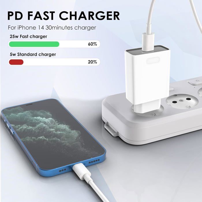 Chargeur Prise Usb C, 25W Embout Chargeur Rapide For Iphone 15 14 13 12 11 8 Plus Pro Max X Xs Répondre aux exigences d'un travail efficace. Prise Usb C Charge Rapide 20W Chargeur Prise USB C Pour IPhone 15 16 Plus/16 Pro/16 Pro Max, IPad Adaptateur Mural Pd Pour iPhone 15 / 15 plus / 15 Pro / 15 pro max Pour iPhone 16 / 16 plus / 16 Pro / 16 pro max Pour iPhone 14 /13/13 Mini/13 Pro/13 Max/12/12 Mini/12 Pro/12 Pro Max, SE, 11/11 Pro/11 Pro Max/ XS/ XS Max/ XR/ X/ 8/ 7 Pour IPad air 5 10,9 pouces 2022 - modèles a2588, a2589, a2591 Pour IPad air 4 10,9 pouces 2020 - modèles a2316, a2324, a2325, a2072 Pour 2021 iPad Mini 6 - modèles a2567, a2568 Pour IPad pro 12,9 pouces 2021 (5e génération) - modèles a2378, a2461, a2379 Pour IPad pro 12,9 pouces 2020 (4e génération) - modèles a2229, a2069, a2232 Pour iPad pro 12,9 pouces 2018 (3e génération) - modèles a1876, a2014, a1895 Pour IPad Pro 11 pouces 2021 - modèles a2377, a2459, a2301 Pour IPad Pro 11 pouces 2020 - modèles a2228, a2068, a2230 Pour IPad Pro 11 pouces 2018 - modèles a1980, a2013, a1934 Fonctionne avec d'autres périphériques USB - C Remarque: compatible uniquement avec les ports USB C, veuillez confirmer que le modèle de l'appareil est compatible avant d'acheter. Chargeur Rapide iPhone [Apple Fi Certifié] Lot de 2 Chargeur Rapide USB C 20W et Câble USB-C... Chargeur, Prise Usb, Prise Usb 12V Camping Car Prise De Courant Pour Chargeur Usb De Voiture 3,1... Charge Ultra Rapide de 20W: Avec une puissance de sortie élevée de 20w et la technologie de Charge Rapide PD, vous pouvez charger votre Aappareil Plus Rapidement qu'un Chargeur standard, économisant de l'énergie et plus de temps Appareils Compatibles: Chargeur Rapide USB C 20W pour Apple Phone 16/16 Pro/16 Pro Max/16 Plus/15/15 Pro/15 Pro Max/15 Plus/14 /13/13 Mini/13 Pro/13 Max/12/12 Mini/12 Pro/12 Pro Max, SE, 11/11 Pro/11 Pro Max, XS/ XS Max/ XR/ X/ 8, Pad., Pro 12., 9/11/Pad Pro/Mini /Air; Google Pixel 5/5 XL/4 XL/4a/4a ; Samsung GalaxyS21/ S20/ S10/ S10+/ S10e/ S9/ S9+/ S8/S8+/Note 10 ou autres appareils prenant en charge l'alimentation USB C Delivery. Vous Obtiendrez: une Alimentation de Chargeur USB C de 2 Pack 20W, service client convivial 24h/24 et 7j/7., Si vous avez des questions, nous résoudrons votre problème dans les 24 heures Avec le Protocole PD, il peut émettre automatiquement et intelligemment la puissance appropriée pour charger rapidement les périphériques USB Type C et type C, tels que les ordinateurs portables, les tablettes et les téléphones portables. Remarque : le câble de données n'est pas inclus dans ce produit. Description du produit Jusqu'à la puissance de sortie pour charger votre téléphone de 0% à 60% en 30 minutes.
