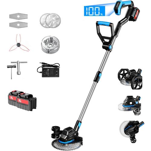 La tondeuse à gazon sans fil est équipée de deux interrupteurs de sécurité et d'un capot anti - éclaboussures pour prévenir les blessures causées par un démarrage accidentel et des éclaboussures de mauvaises herbes. Forte performance de coupe de lame de scie circulaire, adapté à la taille des branches, des arbustes; Les lames de fer plat peuvent être utilisées pour tondre la pelouse; Les lames en plastique peuvent être utilisées pour tondre les jeunes herbes. Rendez votre travail d'entretien de pelouse plus facile. Conçu avec une tête réglable à 90 degrés, il convient à la tonte des pelouses inclinées ou des crevasses difficiles à nettoyer. Wrneaoch 21V Coupe Bordure sans Fil avec Batterie Debroussailleuse 【3 types de lames robustes】Cette tondeuse à gazon sans fil est livrée avec 3 types de lames. 【Tondeuse à gazon électrique sans fil professionnelle 2025】facile à utiliser pour les hommes et les femmes car elle est sans fil et légère, avec une fonction anti - enchevêtrement et une conception pliable. Powerful: debroussailleuse electrique Sans fil avec 850W moteur en cuivre pur de haute puissance. La vitesse à vide de 18000 tr/min (vitesse de travail de... Si vous avez des questions sur le produit, veuillez nous contacter via Amazon et notre équipe de support professionnelle vous aidera à résoudre le problème dans les 24 heures. Spécifications Nom du produit: petite Tondeuse électrique à main domestique Taille: 120cm Matériel: ABS, acier inoxydable, aluminium Puissance nominale: 500W Vitesse de rotation: 0 - 6000 tr / min Batterie: 21v, 2600mah Temps de travail sur une seule batterie: 40 - 45 minutes Temps de charge: 2 heures Longueur rétractable: 1 - 30 cm Diamètre de coupe: 15cm Fonction: tige télescopique, faible bruit, moteur haute puissance Moteur: avec brosse Accessoires d'emballage: 1 * tondeuse à gazon électrique, 1 batterie (ou 2 batteries), 1 * chargeur, 5 * lame en plastique, 2 * lame en alliage, 2 * lame de scie en alliage, 1 * tête de frappe La taille des dents de 15 mm permet de couper facilement les branches et les troncs jusqu'à 15 mm d'épaisseur. Pour Jardin Pelouse Debroussailleuse 21V Electrique Sans Fil Coupe-Bordure Portable, Avec 2 Tondeuse Gazon Sans Fil Légère Entretenir un jardin peut rapidement devenir une tâche ardue, surtout lorsque les bordures et les recoins difficiles d'accès s'accumulent. Le coupe-bordure sans fil 21V de JYGMPRO se présente comme une solution idéale pour ceux qui cherchent à allier efficacité et praticité Convient pour la maison, la Cour, le jardin, etc.