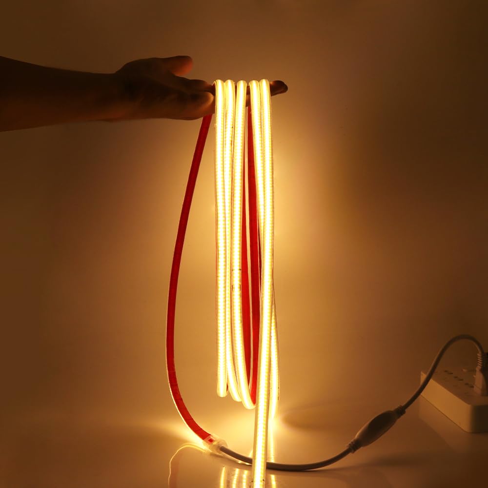 【Convient à toutes les décorations】La bande LED COB fournit un éclairage et une décoration d'intérieur dans la cuisine, sous l'armoire, la salle à manger, la chambre, la fête, le mariage, etc. Bande LED Super Lumineuse Pour Cuisine 220V] 50 Mètres Ruban Led COB Blanc Chaud étanche 220V Au Mètre Pour éclairage Intérieur/exterieur Bande LED étanche IP65 Si la bande s'allume lorsqu'elle est pliée en rouleau, la température élevée peut l'endommager. Ruban LED 220V pour cuisine | LED oent Angle de faisceau de 180 degrés pour un éclairage 50 % plus large, plusieurs puces à bord pour un éclairage uniforme, ne vous inquiétez plus des taches sombres. 【Facile à installer】 Pas de fil conducteur dans la bande LED, connectez facilement votre bande LED à l'alimentation sans colle. XUNATA COB Bandes à LED Blanc Naturel 220V, IP65 étanche 280Leds/m, 1M Super Lumineux Bandeau LED Flexible pour armoire, cuisine, maison, chambre à coucher... 【Les points forts de COB】 Puissance inférieure, efficacité lumineuse supérieure, indice de rendu des couleurs supérieur (90+). Caractéristiques: 1) Type de LED : bande LED COB super lumineuse. Pose facile et rapide, se coupe aux endroits marqués (couper une seule fois tous les 50 cm). Ruban Led 220V Ac 2835 Ip68 Étanche 144Leds-M, Led Strip Light Très 4) quantité de LED : 280 LED/m 5) Couleur : lumière blanche (6000-6500K), blanc chaud (3000-3500K), blanc naturel (4000-4500K) 6) Catégorie imperméable : IP65 Propriétés: 1)Tuyau en PVC transparent pour une utilisation durable et plus lumineux 2) Les bandes LED peuvent être coupées tous les 50 cm. Veuillez sceller la queue de la bande lumineuse avec de la colle imperméable ou un bouchon de queue avant utilisation.