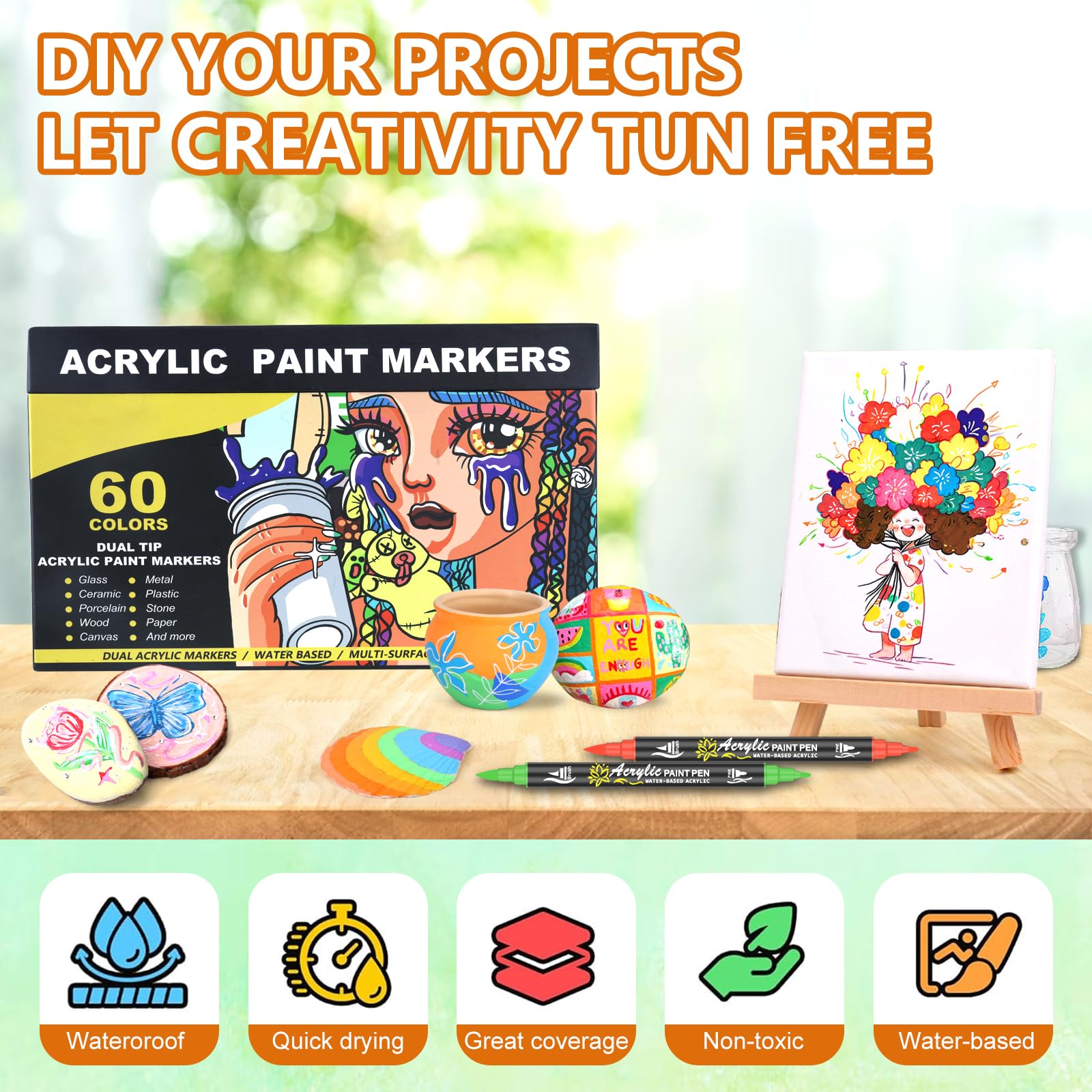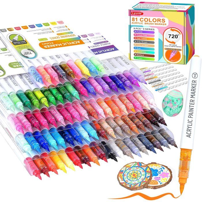Marqueurs Acrylique 24 Couleurs Faburo 24 Couleurs Marqueur Peinture Acrylique, Stylos De Peinture Feutre Acrylique Guangna Le stylo feutre acrylique est équipé d'une pointe pinceau de 1 à 5 mm et d'une fine pointe de 1 mm, parfait pour les détails minutieux et les remplissages. Avec 24 couleurs vibrantes, exprimez votre créativité sans limites!QUALITÉ SUPÉRIEURE : Ce lot de 24 marqueurs acryliques offre une peinture de haute qualité qui sèche de manière... Feutre Acrylique Guangna DELI 12/24/36/48 Couleurs Stylos De Peinture Acrylique Pinceau Double Feutres Coloriage Enfants Ayez l'assurance que vos créations résisteront à l'épreuve du temps sans compromis sur la qualité. Intensity Dual Tip Marqueurs De Couleurs Classiques Et Pastel Avec... Champ d'application : Ces feutres conviennent à une grande variété de surfaces, notamment la pierre, les roches, la céramique, le verre, les bocaux, les chaussures en toile, les tissus, les sacs à dos, le scrapbooking, les métaux, les coquillages, le bois, les œufs, les citrouilles, le plastique, les décorations de Noël, les cartes cadeaux et autres fournitures de loisirs créatifs. Haute qualité : Ces feutres utilisent une encre de haute qualité aux couleurs riches, à séchage rapide, offrant une excellente couvrance, une tenue des couleurs longue durée et une encre fluide sans bavure. Séchage rapide et résistance à la décoloration : Nos feutres sèchent rapidement pour éviter les bavures, et leur formule résistante à la décoloration garantit la pérennité de vos œuvres au fil des ans. 24 feutres de peinture acrylique à double pointe : Chaque feutre est doté d'une pointe pinceau de 1 à 5 mm et d'une pointe fine de 1 mm.