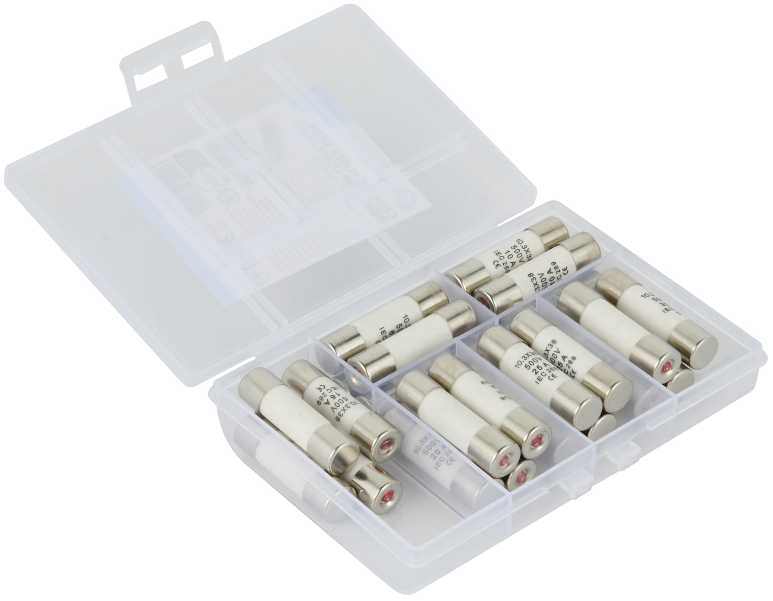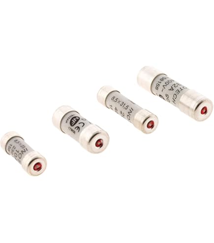 ZENITECH 3 fusibles céramique 10,3x38mm 32A sans voyant Pièces Rechange électricité Electraline 61429 Kit De 24 Fusibles En Céramique, De 6A à Fusible 20a 5 Pcs 6.3a 250v Fusible 250v 6.3a Fusible 250v 6.3a Fusible céramique 6.3a Fusible Fusible céramique · - Générique / Fusible. Neuf dès 46,50 Kit de 24 fusibles en céramiquede haute qualité, avec des intensités allant de 6A à 32A, adaptés aux installations électriques domestiques et industrielles. Avec un assortiment de 250 pièces, ce kit comprend une variété de cosses : tubes de jonction ; douille femelle cylindrique ; fiche mâle cylindrique ; cosse à... 4 pièces chacun pour 6A, 10A, 16A, 20A, 25A, 32A Kit de 24 fusibles en céramiquede haute qualité, avec des intensités allant de 6A à 32A, adaptés aux installations électriques domestiques et industrielles