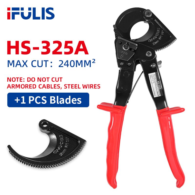 ✔ Verrouillage de sécurité pour éviter toute libération accidentelle. Lames en acier à haute teneur en carbone pour plus de longévité. Sécurité et confort : les grandes poignées ergonomiques avec un mécanisme de verrouillage de sécurité et un couvercle en plastique empêchent le glissement et réduisent la fatigue de la main. Caractéristiques principales : Capacité de coupe maximale de 240 mm². Coupe-câble à Cliquet, HS325A Coupe-câble à Cliquet En Aluminium Et Cuivre Coupe Cable A Cliquet Et Coupe Cable Jusqu A 240 Mm2 97375650 ✔ Poignées antidérapantes revêtues de plastique. Parfait pour les électriciens, les techniciens automobiles et les travailleurs industriels, ce cutter est un incontournable pour les tâches impliquant les câbles d'alimentation, les fils de soudage et le câblage lourd. Yangoutool Coupe-câble à cliquet et coupe-câble à cliquet en aluiniu... Utilisation facile : l'action du cliquet lisse nécessite un minimum d'effort, ce qui le rend adapté pour les tâches de coupe répétitives. Le coupe-câble à cliquet robuste est conçu pour les professionnels et les amateurs de bricolage qui exigent précision et durabilité. ✔ Cliquet lisse pour des coupes efficaces Coupe Câble 240 Mm² Coupe Cable A Cliquet LK-240 Pince Coupante à Cliquet Coupe-câble En Métal Pour Couper Jusqu'à 240 Mm² Coupe Gaine Electrique Coupe-câble 240 Mm² Ses lames robustes en acier à haute teneur en carbone tranchent sans effort les câbles épais en aluminium et en cuivre (jusqu'à 240 mm²), assurant des coupes nettes sans endommager les conducteurs. Coupe-câble à cliquet robuste – Coupe jusqu'à 240 mm² câbles... Construction durable : les lames en acier à haute teneur en carbone garantissent un tranchant durable et des coupes propres sans effilochage des fils.