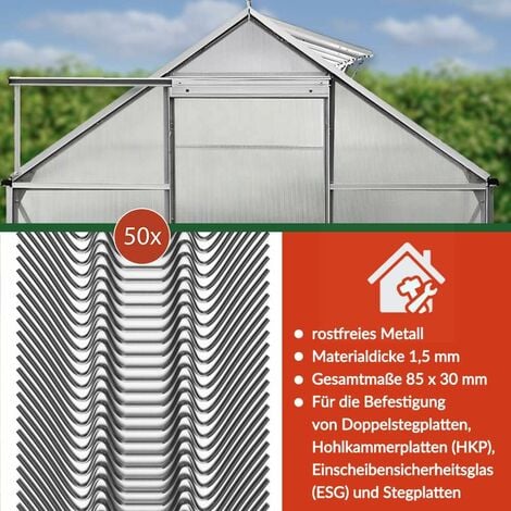 Acier Inoxydable Serre Verre vitre S chevauchement Clips de Fixation Le support a une haute résistance à la rouille et ne rouille pas, prolongeant ainsi la durée de vie et économisant les bornes. Clips Pour Vitres Serre Aluminium Cadre Aluminium 25 Clips En Acier Inoxydable Pour Serre - Fixation Vitrage Type Z - 15x9cm Lot 25 Pièces Clips Acier Inoxydable Serre Contenu du paquet : 1 25 clous en forme de W. Lot de 25 pinces de fixation en métal de type Z pour vitrage de serre et verre. ★ Idéal pour installer une vitre en verre de serre en polycarbonate dans un cadre en aluminium. ★ Ils sont également le meilleur accessoire pour repositionner, réparer ou remplacer des clips plats ou anciens/manquants Ce lot de 25 clips en acier inoxydable (qualité 301, ça rouille pas !) va te sauver la mise. Ils mesurent environ 15x9cm, se plient facilement une fois le verre... Multifonction : les pinces de verre de serre de haute qualité garantissent la sécurité de votre serre. Protection des plantes : notre serre protège vos plantes, légumes, fruits et laitue de la grêle, de la pluie, du vent et de la lumière intense du soleil en toute saison. Convient à une variété de matériaux, tels que les dalles creuses, les papiers peints multiples, les serres en verre, etc. L'acier inoxydable 304 rend le clip plus longue durée de vie et une meilleure résistance à la rouille. Contenu de l'emballage : 25 clips métalliques en acier inoxydable de 7,7 x 3 cm de large Taille : type W : 7,7 x 3 cm., Caractéristiques : 1., Utilisé pour remplacer le verre de la serre et l'entretien quotidien de la serre., 2., Convient à la plupart des serres en aluminium.