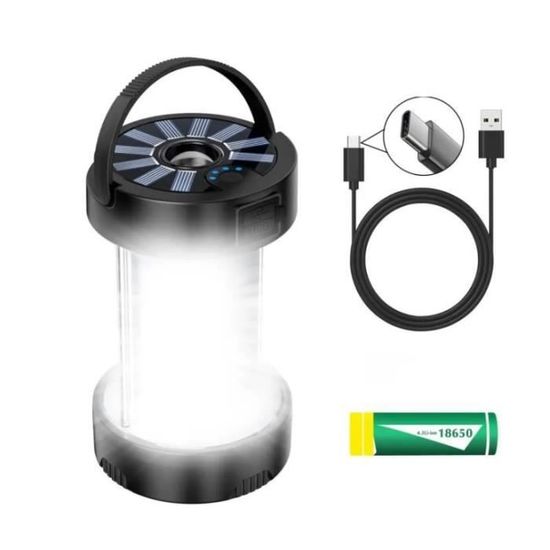 Lampe Solaire Pour Camping Lampe Camping LED, Lanterne Camping Rechargeable 2600mAh, Lampe Torche LED Puissante 6 Modes, Cable USB Inclus, Etanche Pour Bricol - Sport Lampe D'ambiance Camping 300 Lumens Projecteur Portable Led - Camping - 100W - Rechargeable - Étanche IP65 Lanterne suspendue Lanterne LED Lampe de Camping Lampe Rechargeable... 1 x câble de chargementRemarques:1., En raison de la différence entre les différents moniteurs, l'image peut ne pas refléter la couleur réelle de l'article. Nous garantissons que le style est le même que celui indiqué sur les images., 2., Veuillez permettre une légère différence de dimension de 1 à 2 cm en raison de différentes mesures manuelles. 【Chargable à L'énergie Solaire】 : l'éclairage extérieur peut être chargé par l'énergie solaire pour une charge ininterrompue. Bienvenue dans mon magasin, j'espère que vous passerez un agréable shopping !, Caractéristiques: 1., 【Chargable à l'énergie solaire】 : l'éclairage extérieur peut être chargé par l'énergie solaire pour une charge ininterrompue., 2., 【Gradation multiple】 : le mode d'éclairage LED est réglable pour une lumière forte et une lumière faible. 【Gradation Multiple】 : le mode d'éclairage LED est réglable pour une lumière forte et une lumière faible. L'éclairage de la torche est réglable pour une lumière forte, une lumière faible et un flash en rafale. 【Conception De Crochet Unique】 : la conception humanisée de la structure du crochet garantit que la lumière peut être suspendue de manière stable dans divers environnements extérieurs et est facile d'accès. Lanterne De Camping Solaire, Lanterne De Camping Solaire Pliable, Lampe...