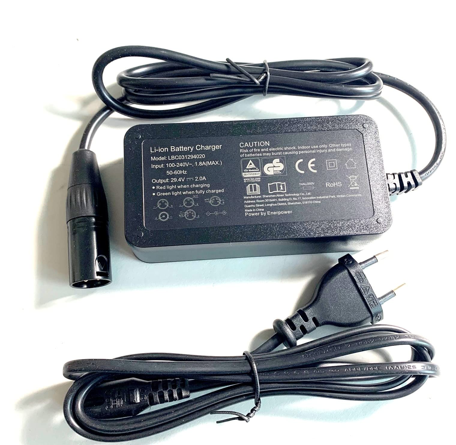 Chargeur Enerpower 54.6V 2A 110 Watt trapèze 5 Broches pour vélos Giant - Unité de contrôle Twist Freedom 2013 Chargeur Vélo électrique Giant 29,4V 2,5A XLR-4 Für GIANT Twist ENERpower Ladegerät ENERpower Batterie 26V GS = sécurité testée Le label GS (sécurité contrôlée) est une marque de contrôle allemande qui indique qu'un produit a été testé par un organisme indépendant pour la sécurité et répond aux exigences légales. Seuls les organismes de contrôle autorisés peuvent attribuer cette marque après avoir été vérifiés avec succès. Compatible avec les batteries 26V des Giant Twist Freedom, Comfort, Elegance et Express. Câble de 1m, certification GS pour une sécurité maximale. Efficacité d... Il signale aux consommateurs que le produit est sûr à utiliser et répond aux normes de sécurité prescrites. Chargeur Enerpower 2,5 A 29,4 V pour batteries 26 V de Giant Twist Compatible avec Giant Twist Elegance CS, Giant Twist Express RS1, Giant Twist Express RS0 Compatible avec GIANT TWIST Freedom CS, GIANT TWIST Comfort CS, GIANT TWIST Comfort CS LITE