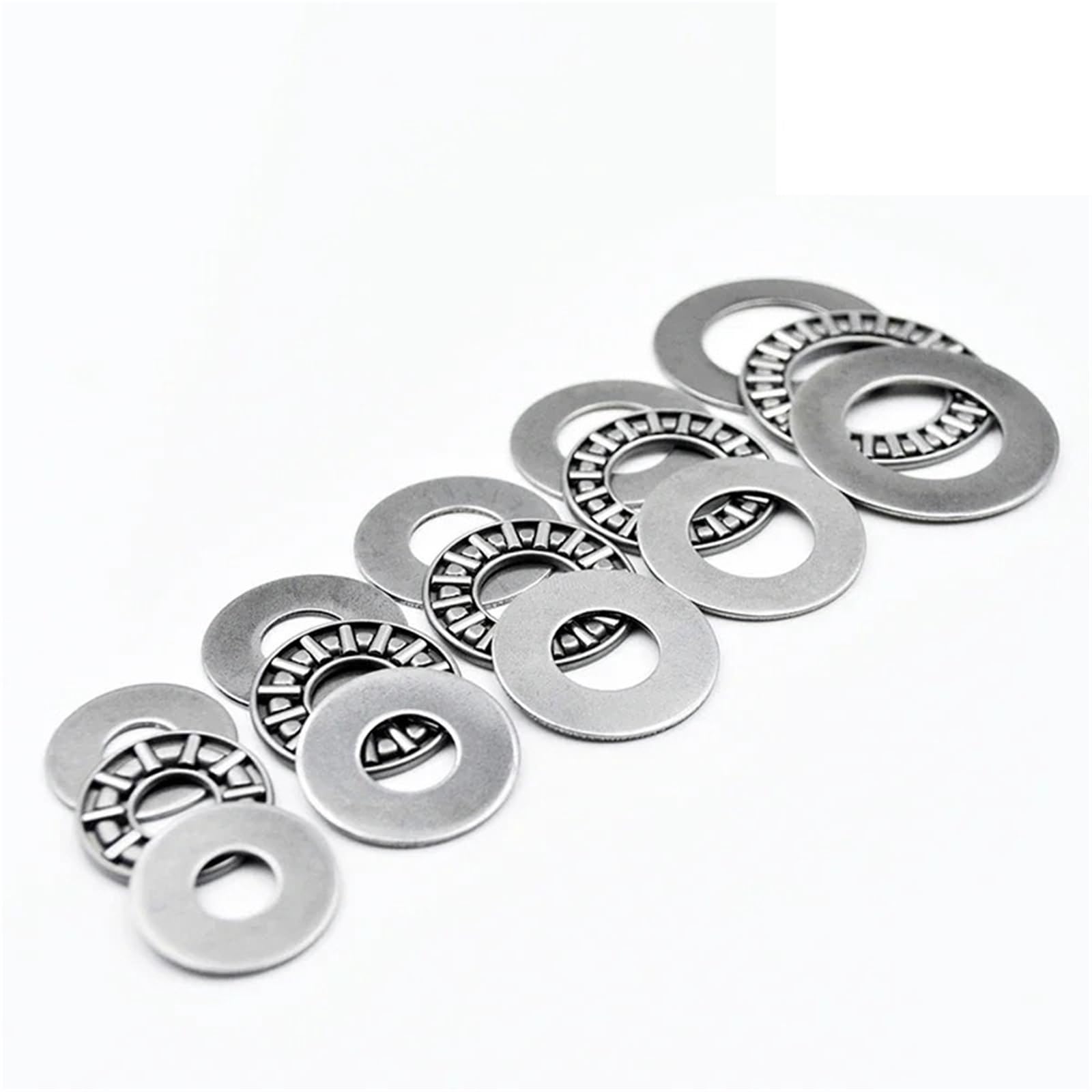 Roulement de butée à aiguilles série AXK AXK0619 AXK0619 =19mm, Épaisseur totale avec rondelles=4mm). Roulements à Rouleaux Qualité Abec 5 Sourcing Map AXK0619+2AS Roulements De Butée à Aiguilles Avec 2 Rondelles, Diamètre Intérieur 6 Mm, Diamètre Extérieur 19 Mm, épaisseur 4 Mm, Dureté GCr15 2 Pièces Roulement Pour Robotique Agricole Les roulements de butée peuvent être combinés avec des rondelles dans des applications où les composants adjacents ne peuvent pas servir de chemins de roulement. Les roulements à rouleaux à aiguilles axiaux (de poussée) sont des unités comportant les rouleaux axiaux d'aiguille et les ensembles de cage et les rondelles axiales de roulement avec une broche de centrage Taille : 6 mm de diamètre intérieur, 19 mm de diamètre extérieur, 4 mm d'épaisseur 2 pièces 1. Ces roulements de butée à rouleaux à aiguilles offrent un haut... Ils peuvent supporter des charges axiales élevées et offrir un fonctionnement fluide et efficace. Matériau : Rouleaux en acier au chrome pour une excellente tolérance à la chaleur et une durabilité, garantissant que les rouleaux peuvent supporter des charges lourdes sans compromettre leurs performances. Caractéristiques : Les roulements de butée à aiguilles offrent une excellente résistance aux charges et une faible friction, adaptés pour supporter des charges axiales dans une seule direction uniquement. Ces roulements supportent des charges axiales lourdes et des charges de crête en raison de l'écart de diamètre réduit des rouleaux au sein d'un ensemble. Tolérance P5 (ABEC 5) : Roulements de qualité classés ABEC adaptés pour des applications où la précision et la fiabilité sont essentielles, telles que dans les machines-outils et les transmissions automobiles. Ils ont une section transversale plus petite qu'un roulement de butée standard pour une utilisation dans des espaces restreints.