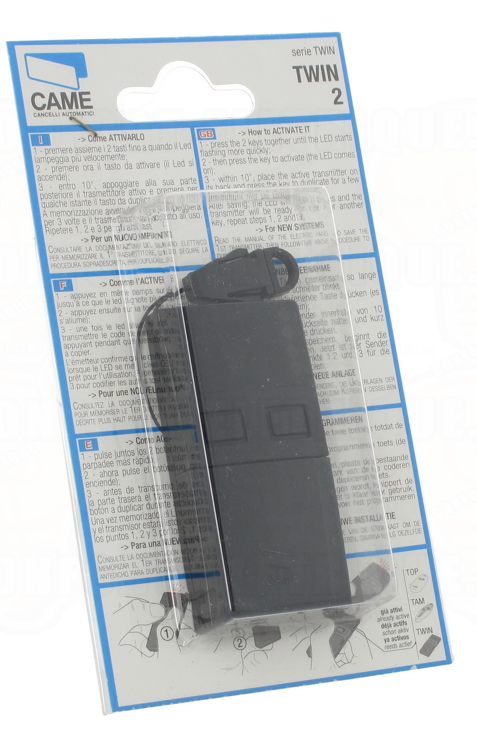 Telecommande Universelle Portail Came Top432EE Télécommande 2 Canaux Télécommande Radio 433,92 MHz Haute Portée Jusqu'à 150m La Came TOP 432EE est sur Télécommande portail, piles et notice incluses. Livraison gratuite avec le code promo Achetez la télécommande TOP432EE de CAME sur Le courant de transmission de la télécommande (8-10mA) permet une portée normale de 50-100 mètres et une portée maximale de 100-150 mètres dans les espaces ouverts. Bricolage - Découvrez notre offre Télécommande CAME TOP-432EE 2 canaux (EX TOP 432EV) ver.2019 TOP-TAM. Livraison gratuite à partir de 25... La télécommande universelle 433MHz convient pour les voitures, les portes de garage, les portails, les lucarnes, les systèmes d'alarme pour voitures/motos, les appareils électroménagers, les télécommandes sans fil, la domotique/l'éclairage, les produits de contrôle industriel, etc. La télécommande universelle de porte de garage reconnaît automatiquement les signaux ASK (315M/433M) et ouvre la porte de garage à distance, sans avoir à sortir de la voiture., Compact et portable. Il s'adapte parfaitement à la voiture et peut être utilisé directement pour remplacer des pièces d'origine anciennes ou endommagées., Longue portée. Buzzer universel pour porte de garage Convient à la transmission porte/récepteur 433,92 MHz pour TOP432NA, TOP432A, TOP432EE, TOP432, TOP432EV, TOP432M, TOP43S et autres., Télécommande.