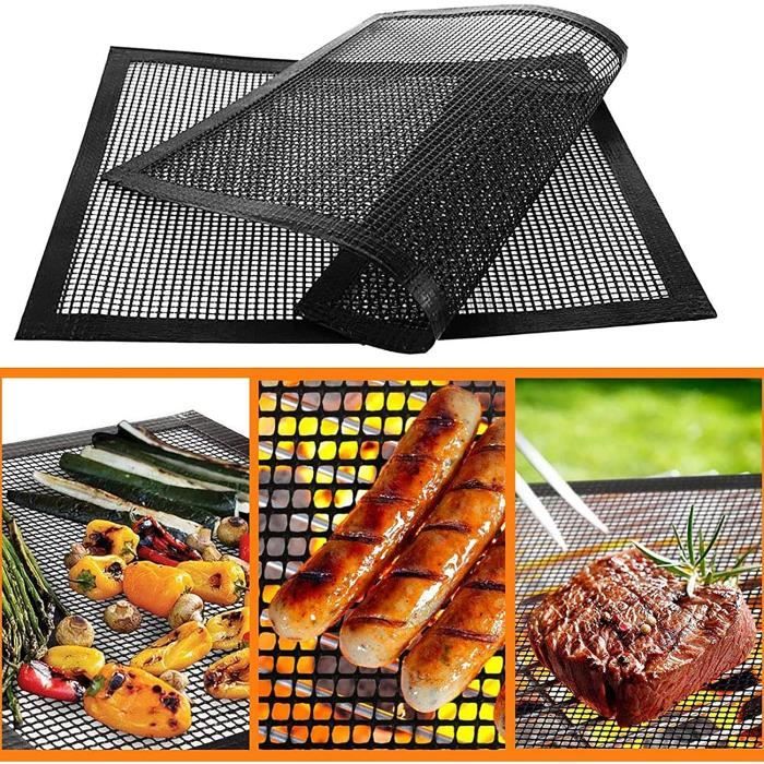 Grille Pour Barbecue 40 30cm Grille Barbecue Decoupable, 2PC Tapis De Cuisson Réutilisable Tapis Cuisson Lot de 4 Pièces Grille Barbecue, Filet Barbecue Tapis de Cuisson GRILLE DE BARBECUE Remplacement Cuisson Tapis Maille Clips Poisson... Ceux-ci peuvent être découpés pour s'adapter aux dimensions et à la forme de divers appareils, notamment les barbecues, les grils électriques, les fours et les friteuses à air chaud. Matériau : Fabriqué en téflon, le tapis de cuisson offre une résistance exceptionnelle à la chaleur et des propriétés antiadhésives supérieures. Il empêche les aliments de coller à la grille ou de tomber dans les braises, et résiste à des températures allant jusqu'à 260 °C. Emballage : chaque lot contient quatre tapis de cuisson pour barbecue mesurant 40 x 30 centimètres. Réutilisable : La surface lisse et antiadhésive minimise l'adhérence des résidus alimentaires. De plus, ce produit réutilisable élimine le besoin de papier sulfurisé jetable, offrant ainsi des avantages à la fois environnementaux et économiques. Utilisation polyvalente : convient à tous les types de grils, y compris les grils à gaz, à charbon, à propane et électriques, ainsi qu'aux cheminées, fours et fumoirs, répondant ainsi à divers besoins culinaires. Barbecue,Grille ronde pour barbecue,tampon antiadhésif,haute...