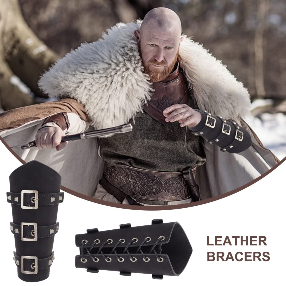 Armure médiévale en cuir modèle Cicero, couleur marron ⚔️ Boutique Épées Brassards Réglables Adulte 2PCS Cuir Gauntlet Bracelet Médiéval Armure Brassards Viking Pour Cosplay Halloween Bracelets en cuir médiéval]Ces bracelets punk marron sont fabriqués en simili cuir, rétro et tendance, confortables à porter, sept trous de sangle en métal sont répartis des deux côtés du bord, la boucle est confortable et facile à mettre et à enlever 【Protège-bras】L'ensemble comprend 2 pièces de protège-poignets en cuir avec des cordes réglables, qui sont d'une fabrication exquise, légères et résistantes à l'usure, et peuvent être utilisées aussi bien par les hommes que par les femmes. Brassards armure faux cuir marron à rivets, médiéval fantastique... 【Cadeau parfait】Ces bracelets en cuir médiévaux sont des cadeaux idéaux pour la famille, les amis, les petits amis pour les anniversaires, Halloween, Noël, le Nouvel An, la fête des pères, les soirées à thème. 【Bracelets en cuir médiéval】Ces bracelets punk noirs sont fabriqués en simili cuir, rétro et tendance, confortables à porter, sept trous de sangle en métal sont répartis des deux côtés du bord, la boucle est confortable et facile à mettre et à enlever.