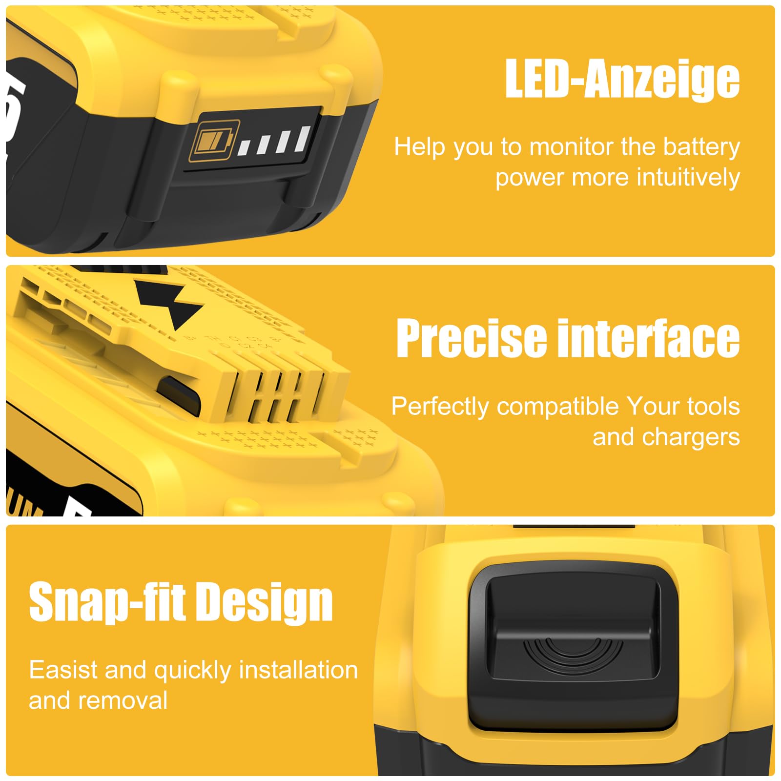 Goodexo 2 pièces DCB184 18V 5000mAh remplacement pour Dewalt 【 Batterie Spezifikationen 】Type de batterie - Li-Ion ,Tension: 18V, Capacité: 5., 0Ah, remplacement pour Dewalt 18V Batterie. Chargeur Batterie Dewalt 2X 18V 5000 MAh De Remplacement Pour Dewalt Batterie 18V DCB184 DCB180 DCB181 DCB182 DCB200 DCB201 DCB201-2 DCB200-2 DCB204-2 DCB205-2 Outils électriques Compatibles Batteries Dewalt 18V Remplacement Pour la série DCD de : DCD740, DCD740B, DCD780, DCD780B, DCD780C2, DCD780L2 DCD785C2, DCD785L2, DCD980L2, DCD980M2, DCD985B, DCD985L2 DCD985XRn, DCD985L2, DCD785C2, DCD780C2, DCD780B, DCD740C1, DCD740B. Puissance : 90 W. Type : lithium-ion Compatible avec : Pour Dewalt DCB181-XJ DCB181 DCB180 DCB182 DCB183 DCB184 DCB185 DCB200 DCB201 DCB201-2 DCB203 DCB204 N123283 N123282 DCB204-2 DCB200-2 Remplacement pour les modèles d'outils pour Dewalt 18 V : Pour Dewalt DCD : DCD791NT-XJ, DCD796-BARE, DCD701D2-QW, DCD796N, DCD800NT-XJ, DCD708D2T-QW, DCD709N-XJ, DCD996 Pour Dewalt DCF Akku passend für Dewalt DCB180, DCB181, DCB182, DCB183, DCB184, DCB185, DCB200, DCB201, DCB203... Es hat Schutzfunktionen, um falsche Spannung, Kurzschluss und interne Überhitzung zu verhindern. 【 Perfekte Leistung 】 Der Akku ist mit LED-Anzeigeleuchten ausgestattet, mit denen Sie den Stromverbrauch und den Batterieverbrauch schnell überwachen können, um rechtzeitig aufzuladen. Wenn Sie Fragen haben, kontaktieren Sie uns bitte per E-Mail Produktdetails: Parfaitement compatible avec les modèles d'outils 18V : (Utilisez Ctrl + F) Compatible avec les outils électriques sans fil 18V et les chargeurs DCB105 DCB107 DCB112 DCB115 DCB118, Remplace les batteries rechargeables pour 18V XR: DCB184-XJ DCB184 DCB180 DCB182 DCB183 DCB200 DCB181 DCB184-2 DCB200 DCB203 DCB204 DCB204-2 N123283 N123282., Modèle correspondant:(Recherchez avec Ctrl+F). 【Sicherheit und Zuverlässigkeit】Das Produkt hat FCC-, CER- und ROSH-Zertifizierungen bestanden. Paquet : 2 x 18V batterie de remplacement pour Dewalt batterie 18V 1 x manuel de l'utilisateur