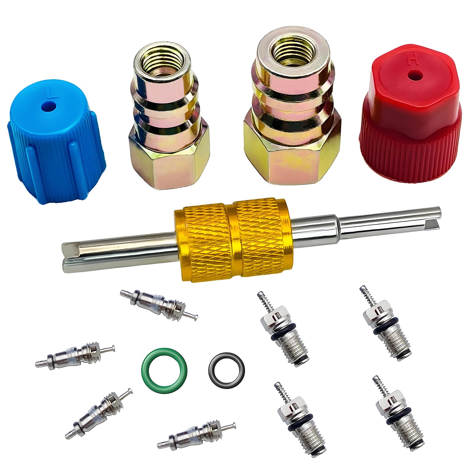 RACCORD ADAPTATEUR R134A vers R12 avec construction en laiton massif pour durabi EUR 11,18... 1 x 3/8-24UNF (3/16 ) R12/R134a rénovation latérale basse 1 x 3/8-24UNF (3/16 ) R12/R134a haute modernisation latérale Kit Vannes Capuchons 3/8 7/16 2X R1234Yf à R134A Coupleur De Côté Bas, Raccord Adaptateur De Tuyau R12 à R134A Connecteur Pour Raccords Climatisation Auto 3/8 7/16 Diamètre de capuchon rouge: 20 millimètres Boltigen Adaptador R1234yf a R134a, adaptador R134a, kit de adaptador R134a a R1234yf, para... Diamètre de capuchon bleu: 18 millimètres Ywei Adaptateur Réfrigérant R12 à R134A Vacuum Pompe Tuyau