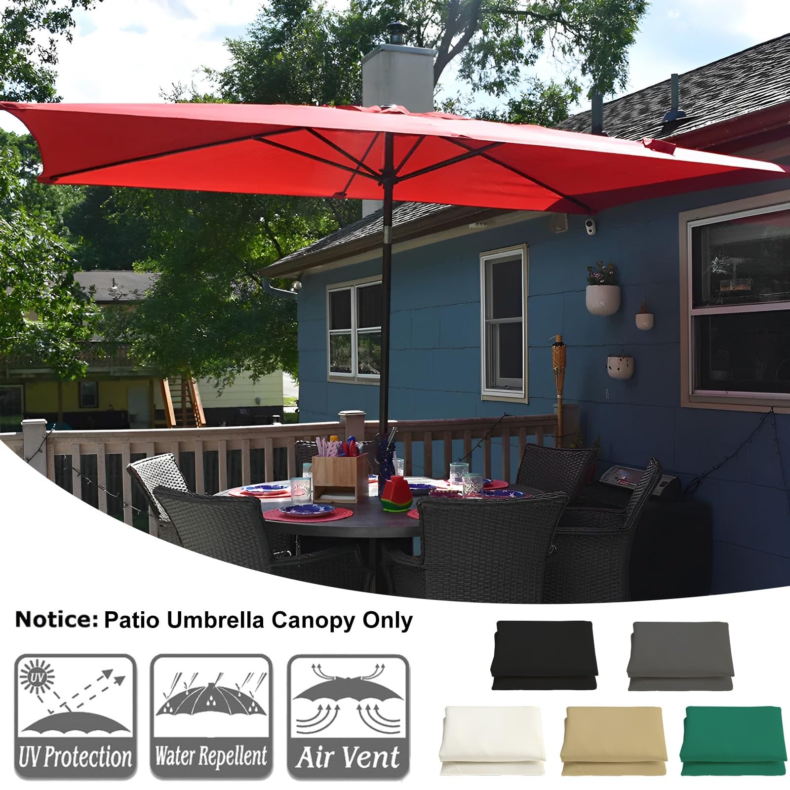 Housse De Rechange Pour Parasol - 6 Baleines 2M-3M Toile De Rechange Imperméable et résistant aux UV : la housse du parasol est fabriquée en tissu résistant aux UV et en fibre de polyester double couche, imperméable, respirante et anticorrosion. Bloque efficacement les rayons UV nocifs et constitue un bon remplacement pour les vieux parasols cassés. Plus durable Porte Parasol Balcon Housse De Remplacement Pour Parasol 3.0m * 2m, Toile De Rechange Carrée Pour Parasol 6 Baleines, Auvent De Remplacement En Polyester, Protection UV Et Résistant À L'eau (Toile Uniquement)(Couleur:Blan Toile De Rechange Imperméable Améliorez votre parasol de terrasse avec cette toile de remplacement de haute qualité fabriquée à partir de tissu 100% polyester. Conçue pour s'adapter aux parasols de terrasse à 6 et 8 baleines, cette toile de remplacement est disponible en différentes tailles pour s'adapter à différents modèles de parasols. Caractéristiques: 1. Respirant, imperméable, vous protège du soleil et laisse passer la brise fraîche. 2. Résistant à l'usure et durable, facile à installer et... Construite avec du polyester haute densité, cette toile offre une excellente résistance à l'eau et une protection UV, la rendant idéale pour une utilisation en extérieur. Avant d'acheter, assurez-vous d'obtenir un ajustement parfait en mesurant la longueur des baleines de votre parasol. Veuillez noter que le colis comprend uniquement la toile de parasol de terrasse. Économisez de l'argent sans compromettre la qualité avec cette toile de remplacement économique.