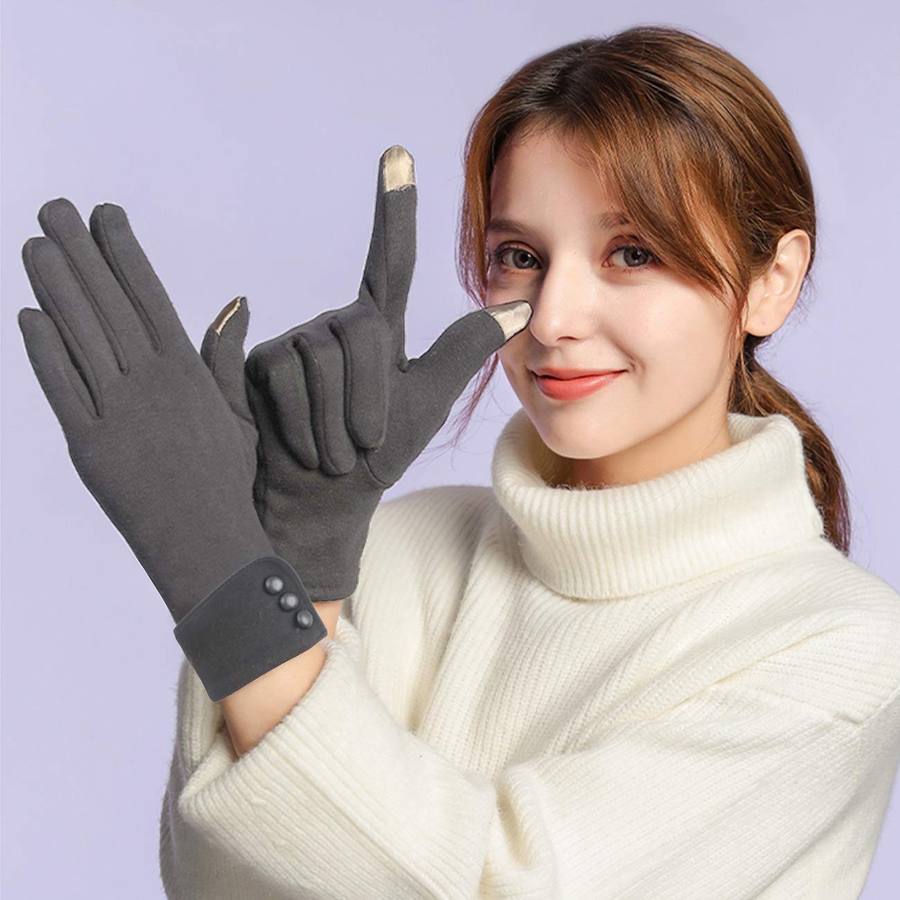 Sensible à l'écran tactile: le pouce et l'index du gant sont en tissu tactile. LAMA · 2 Paires Femme Gants Hiver Gants Écran Tactile Gants Peluche Chaude Gant Doublé Coupe-Vent Gants d'hiver épais Femmes Dames Fille · 4,34,3 sur 5 étoiles... Comparé à un ourlet simple, où le duvet intérieur peut être facilement exposé et ouvert facilement, le double ourlet peut resserrer le poignet et est plus durable et plus beau. La partie extérieure est en polyester et coton, la matière intérieure en micro velours. Gants Chauffants Femme Impermeable Enfant 2paires Gants à Ecran Tactiles Tricotés Gant Femme En Laine Gants Femme Hiver Le poignet du gant est ourlé deux fois. LAMA Lot de 2 paires de gants d'hiver chauds pour écran tactile pour femme Design classique : Couverture complète de vos doigts, offre à vos mains une protection complète contre le froid pendant les jours d'hiver, la désignation à 3 boutons est délicate et adorable, ce qui est élégant et simpliste, peut correspondre à vos différents styles. Cousu à la main & Processus à double bord: les boutons en cuir sont cousus à la main, ce qui est différent des boutons adhésifs facilement amovibles. Découpe tridimensionnelle: le pouce du gant utilise un processus de découpe et de couture triangulaire tridimensionnel, qui est ergonomique et le gant est plus confortable à porter, ce qui rend le mouvement du pouce plus flexible. Il est doux et confortable, élastique moyen et convient à la plupart des gens. Gants fins et élégants: ces gants d'hiver pour femmes sont minces et couvrent complètement les doigts. Doux, chaud et coupe-vent, il vous rendra à la mode et élégant comme Audrey Hepburn. Gants fins et élégants: ces gants d'hiver pour femmes sont minces et couvrent complètement les doigts. · Sensible à l'écran tactile Contenu : 2 paires de gants chauffants., Remarques : 1., Légères aberrations chromatiques en raison des différents écrans., 2., Taille générale moins élastique. Vous pouvez acheter 2 ensembles pour un prix raisonnable, avec différentes couleurs au choix. Gant Femme Hiver Chaud Gants D'hiver Femme En Daim - Compatibles écran Tactile - Doublure Laine - Taille S/M Et L/XL Ensemble Femme Chic Et Elegant