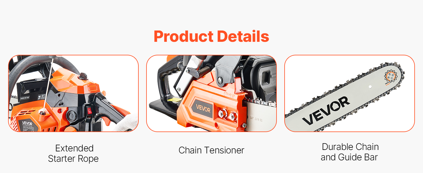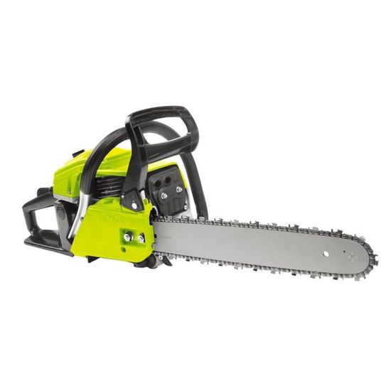 Matériau principal : PA6 + 30 % GP, aluminium ADC La chaîne et le guide-chaîne robustes améliorent la stabilité et prolongent la durée de vie. 1 x lime à manche rouge, 1 x tournevis Poids du produit : 5,6 kg / 12,35 lb RPM : 8 500 tr/min ; Max., 12 000 tr/min, Couleur : Orange + Noir Le rapport de mélange de 40:1 maintient la chaîne lubrifiée, réduisant ainsi l'usure. Tronçonneuse thermique : profitez d’une grande autonomie et de beaucoup de puissance avec les tronçonneuses thermique de chez Leroy Merlin. Retrouvez une grande variété de modèles et de marques dans vos magasins Leroy Merlin et sur notre site internet 1 x plaque de protection Coupe polyvalente Notre tronçonneuse à essence est dotée d'un guide-chaîne de 355 mm (14 po), idéal pour couper des arbres d'un diamètre allant jusqu'à 300 mm (11,8 po), ce qui la rend adaptée aux tâches d'exploitation forestière domestiques et professionnelles. 2 x bouchons d'oreilles en corde Longues séances de travail La tronçonneuse à essence est équipée d'un réservoir de carburant de 310 ml (0,08 gal) et d'un réservoir d'huile de chaîne de 210 ml (0,06 gal), ce qui minimise les ravitaillements. Il suffit d'appuyer sur le levier d'arrêt. Cette tronçonneuse à essence offre des performances stables, évitant les fissures et les fuites d'huile Le verrouillage de l'accélérateur et le contacteur moteur doivent être activés simultanément, ce qui réduit les démarrages accidentels et renforce la sécurité. De plus, le carter de protection empêche efficacement les projections de copeaux de bois Tronçonneuse à Essence 355 mm, Tronçonneuse Thermique 40 cc, 1,3 kW, avec Poignée Antidérapante, Double Réservoir de Carburant, pour Coupe de Bois... Spécification Numéro du modèle de l'article : 4000, Cylindrée : 40 cc, Puissance : 1,8 CV / 1,3 kW 1 x housse de tronçonneuse Le guide-chaîne de 355 mm (14 po) coupe des arbres jusqu'à 300 mm (11,8 po) de diamètre, améliorant ainsi l'efficacité du travail. Tronçonneuse Thermique Guide 355mm Vevor Tronçonneuse à Essence , 58 Cm³, 50 Cm³, 3,22 CV, Sans Fil, Pour La Coupe De Branches, L'élagage, Le Défrichement, La Coupe De Bois, La Ferme, Le Jardin, Le Ranch Et La Tronçonneuse Essence Appuyez sur la bulle d'huile, sur l'interrupteur de démarrage et tirez sur la corde pour démarrer et passer rapidement en mode travail Fonctionnalités de sécurité La tronçonneuse est équipée d'un frein de secours qui coupe rapidement l'alimentation en cas d'urgence. 1 x barre de guidage, 1 x chaîne Performances puissantes : Cette tronçonneuse à essence de 40 cc est équipée d'un moteur de 1,8 ch (1,3 kW) avec un régime maximal de 12 000 tr/min. Caractéristiques principales Journalisation efficace Cette tronçonneuse à essence de 40 cc développe une puissance de 1,8 ch (1,3 kW) et atteint un régime de 12 000 tr/min, permettant de réaliser efficacement divers travaux d'abattage. Adaptable aux conditions extérieures : Le corps composite PA6 + 30 % GP offre une résistance aux chocs et une durabilité à haute température. 1 x petite bouteille de mélange 0,5 L, 1 x entonnoir Son corps en PA6 + 30 % GP est robuste et étanche, avec des réservoirs de carburant longue durée de 310 ml (0,08 gal) et d'huile de 210 ml (0,06 gal). Capacité du réservoir d'huile de chaîne : 210 ml / 0,06 gallon Diamètre de coupe maximal : 11,8 po / 300 mm 1 x douille de scie à huile transversale 13-19 1,8 mm Tronçonneuse à essence GreenLine GM 6245 - 61 cc