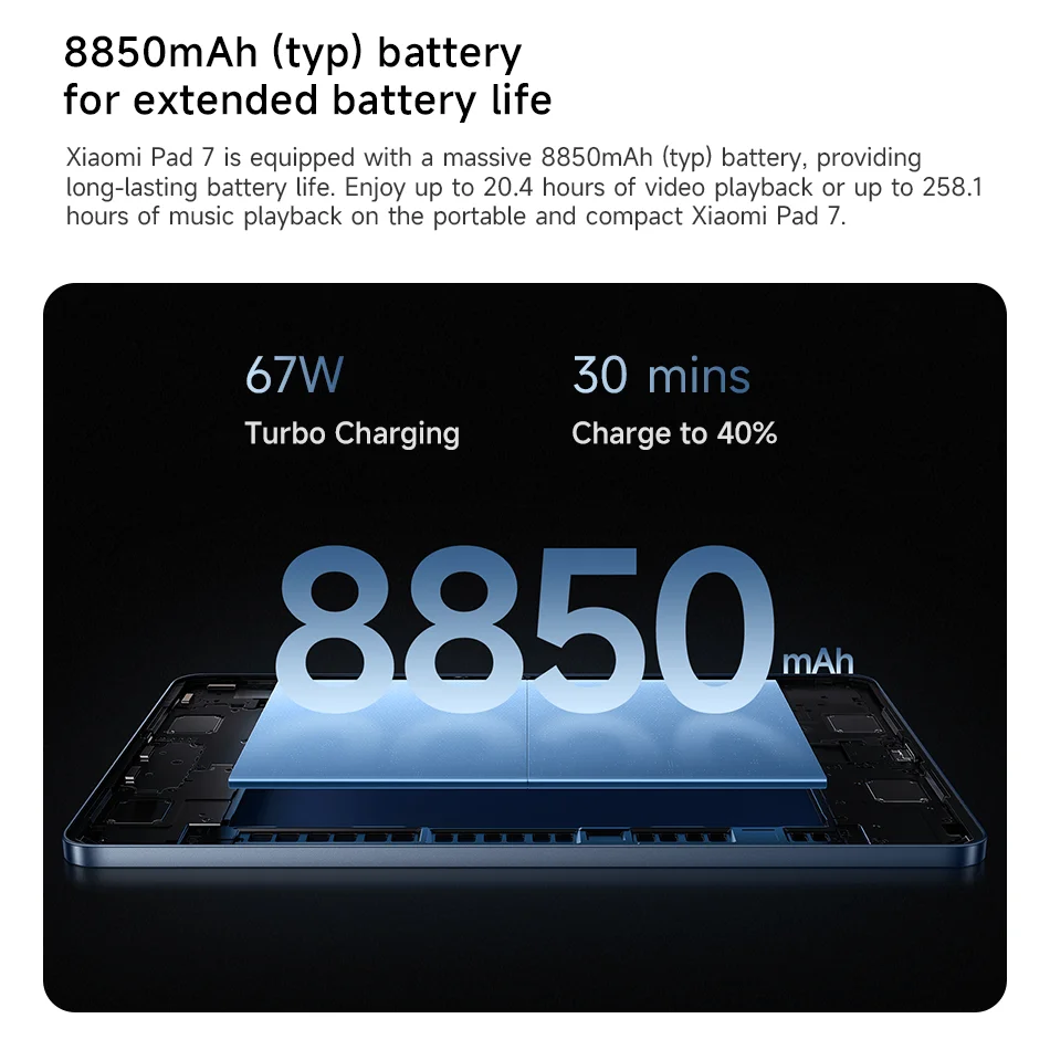 Tablette 512 Go Xiaomi Pad 7 11" 3.2K 144 Hz 8 Go/128 Go 8850 MAh 45 W Snapdragon 7+ Gen 3 Gris + Clavier Tablette WiFi Snapdragon 7 Xiaomi annonce à l'occasion du MWC 2025 sa nouvelle série de tablettes tactiles Pad 7 avec deux modèles : la Xiaomi Pad 7 et la version Pro, avec des caractéristiques de haut de... Xiaomi Pad 7 et 7 Pro : le constructeur chinois présente deux Plate-forme mobile Snapdragon 7+ Gen 3 Performances puissantes : profitez de performances puissantes et d'une expérience fluide améliorées par la plate-forme mobile Flagship Snapdragon 7+ Gen 3, qui utilise un processus avancé de 4 nm pour offrir des performances de sortie et une efficacité énergétique, que vous fassiez un travail créatif tel que l'édition de vidéos, ou simplement ly playing graphics., s-required games. Xiaoi Redi Pad Pro 5G 8 256 Go Écran 12.1, Batterie de 10000 Ah... Profitez de jusqu'à 20,4 heures de lecture vidéo ou jusqu'à 258,1 heures de lecture de musique sur le Xiaomi Pad 7 portable et compact. Écran de drapeau transparent : Xiaomi Pad 7 dispose d'un écran transparent 3,2 K, offrant des visuels beaucoup plus clairs et détaillés. Certifications professionnelles multiples conçues pour un meilleur confort des yeux : les fonctions de soin des yeux multi-dimensionnelles de l'écran telles que 4096 niveaux d'ajustement de la luminosité, ont obtenu des certifications de confort oculaire TÜV Rhénanie, assurant que vos yeux sont protégés même pendant une utilisation à long terme. Ce produit est une version WiFi et ne peut pas être inséré avec une carte ou une carte SD., !, !