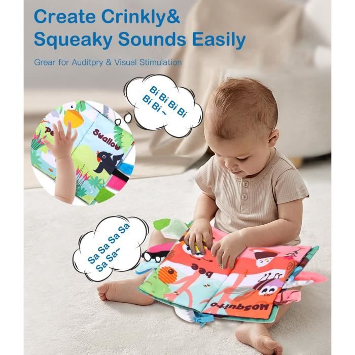 Mon coffret naissance - 3 livres d'éveil pour bébé Idéal pour Le Développement des Nouveau-Nés: Accompagnés d'éléments de dentition, d'un miroir sécurisé, d'un dispositif sonore et de papiers froissables, ces... Livre D'éveil Bébé Tissu Livre Tissu Montessori Hahaland - Livre Sensoriel Bébé 3-6 Mois - Set D'éveil Avec Miroir Et Papier Froissé Cadeau Naissance 3 Mois Livre Bébé Couleurs Vives Animaux 【JOUET ÉDUCATIF】Les pages du livre pour bébé sont construites avec des motifs d'animaux de différentes couleurs, et les couleurs vives et accrocheuses donnent aux bébés un impact visuel. 【UN LIVRE MIGNON ET AUX COULEURS VIVES】Il y a 2 livres en tissu avec des images, chaque page est représentée par des couleurs très vives, magnifiques qui traitent de différents thèmes : forme, couleur, mot, nombre et plus encore., Stimule la vue. Non toxique et sûr : Fabriqué en polyester et coton, ce livre en tissu pour bébé est incroyablement durable, confortable et non toxique. Vous n'avez donc pas à... Les première et dernière pages peuvent bruisser pour attirer l'attention auditive du bébé et lui faire profiter de la sensation d'excitation. 【MATÉRIAU DOUX ET SÉCURISÉ】Livres sensoriels pour bébé en fibre de polyester et intérieur en coton, non toxique, durable et sûr. 【CADEAU PARFAIT】Le livre en tissu pour bébé convient aux cadeaux de baby shower, aux cadeaux d'anniversaire, aux cadeaux de Noël et à l'éducation de la petite enfance, aux jouets de voyage. Explorez avec votre tout-petit les couleurs vives, les textures froissées et les sons et autres surprises cachées dans ce livre pour bébé.