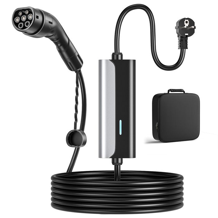 Grâce à sa grande étanchéité, vous pouvez l'utiliser sans crainte même par temps humide. Chargeur EV Portable VEVOR 3,6KW Chargeur Voiture électrique 250V Câble Allumez simplement l'appareil et la fonction mémoire démarrera automatiquement. Chargeur D'urgence Voiture VDLPOWERVP , 3.6KW EV Chargeur Type 2, Courant Réglable 6/8/10/13/16A Chargeur Voiture Electrique VDLpower Chargeur pour voitures électriques type 2 16A | 3,6 kW Avant de charger, veuillez vérifier que le courant de charge maximal réglé dans le système du véhicule est bien de 16A. Nous vous recommandons toutefois d'éviter tout contact avec l'eau. Tera Sart EV Chargeur Type 2 Wallbox: Borne de Recharge Véhicule Electrique 7,6kw onophasé 32A... 🚗【Sécurité Maximale】 Le chargeur Voiture électrique utilise des matériaux de prise et de câble à âme en cuivre de haute qualité pour rendre la charge plus sûre et plus stable. 🚗【Réservez la charge et économisez de l'argent】VDLPOWERVP Cable Voiture Electrique, vous pouvez réserver le temps et la durée de charge, vous pouvez la régler pour qu'elle se charge automatiquement après 1 à 10 heures ou régler la durée de charge sur 1 à 10 heures. Le VDLPOWERVP Chargeur Voiture Electrique s’avère être un outil de recharge extrêmement flexible grâce à son courant réglable entre 6 et 16 ampères. Cette fonctionnalité permet d’adapter la puissance de charge à l’installation électrique disponible, un atout majeur pour ceux qui souhaitent optimiser l’utilisation de leur réseau domestique Le câble de recharge type 2 avec scuko permet de régler différents courants : 6/8/10/13/16A. 🚗【Courant Maximum 16A Réglable】VDLPOWERVP Chargeur type 2 avec une vitesse de charge maximale de 3,6 kW. Vous pouvez alors charger en consommant peu d'énergie, ce qui vous permet d'économiser du temps et de l'argent. Pendant le processus de charge, vous pouvez surveiller le courant, la tension, la température et la capacité de charge, Il y a également les voyants suivants qui vous aident à résoudre différents problèmes lors de la charge. Il peut être facilement transporté que ce soit à la maison ou en déplacement et peut recharger la voiture à temps.