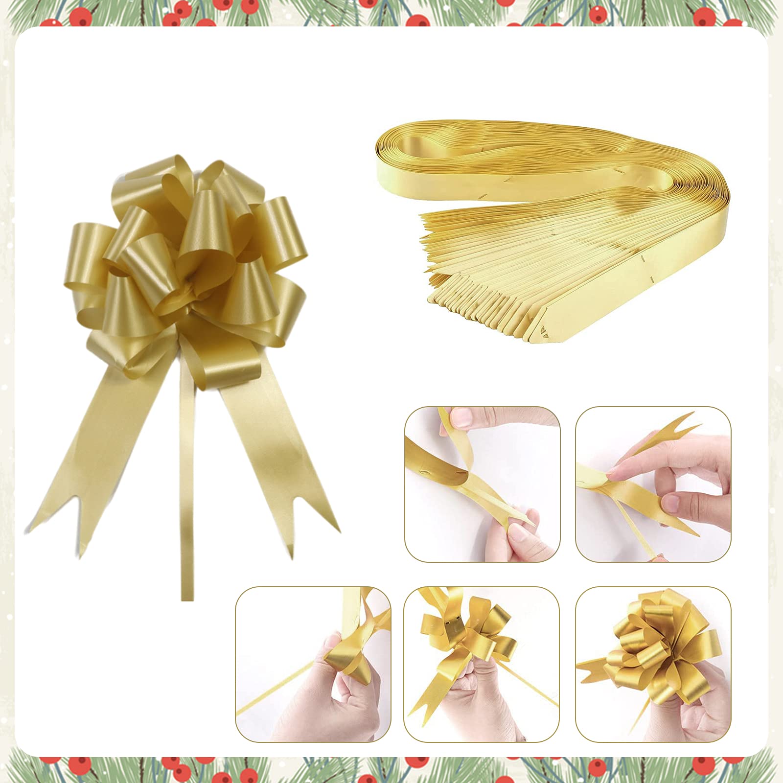 Nœuds Organza Emballage Cadeau MECCANIXITY Lot De 5 Grands Nœuds à Tirer De 20,3 Cm Avec Bord Doré, Ruban En Organza Pour Emballage Cadeau De Voiture De Mariage, Panier De Voiture, Cadeau De Noël, Vert Nœuds Organza à Tirer Nœuds à tirer - A1129 - 30 mm - Vert - Imprimés - Décoration... sourcing map Lot de 5 grands nœuds à tirer avec bord doré en Arcs décoratifs à tirer : Rendez vos cadeaux plus impressionnants et plus accrocheurs avec les nœuds à tirer pour l'emballage des cadeaux et très utiles pour augmenter l'atmosphère de fête à diverses occasions. Large application : ces nœuds sont parfaits pour l'emballage de cadeaux, les travaux manuels, les paniers, les murs de fête, les bouteilles de vin, les voitures, les gâteaux, les décorations florales et peuvent être utilisés pour les mariages, les anniversaires, les fêtes, les fêtes de Noël et plus encore Large application : Ces grands nœuds de ruban sont parfaits pour l'emballage de cadeaux, l'artisanat, les paniers de fruits, les murs de fête, les voitures de mariage, les gâteaux, les décorations florales, et peuvent également être utilisés pour les mariages, les anniversaires, les fêtes d'anniversaire, les fêtes de Noël et ainsi de suite. Le paquet comprend : 5Pcs Gros nœuds dorés pour l'emballage de cadeaux, exquis et beaux, quantité suffisante pour répondre à vos besoins en matière d'emballage de cadeaux. Matériau durable : Ce nœud pour l'emballage des cadeaux est fait de fil de neige et de ruban avec des couleurs vives, il n'est pas facile à casser, il ne se décolore pas et il peut être réutilisé pendant longtemps. Caractéristiques :1., Superbe nœud de couleur dorée, magnifique et transparent, qui donne l'impression que vos cadeaux ont été emballés par un professionnel., 2., Convient pour l'emballage des cadeaux d'anniversaire, de shower de bébé et de mariage, mais aussi pour les voitures, les cadeaux au champagne, les paniers-cadeaux, l'artisanat, les tables de fête, les chaises et la décoration des portes.