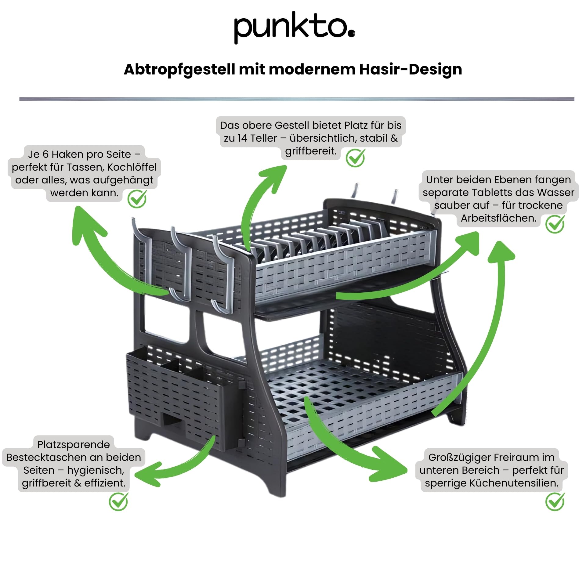 Égouttoir à vaisselle style vintage - L 26 cm x l 38,5 cm x H 28,3 cm Grâce à son design bien pensé, les assiettes, verres, bols et couverts peuvent sécher efficacement et en toute sécurité. Rangement Vaisselle Sèche Elite Égouttoir à Vaisselle – 3 Couleurs – 46 X 38 X 9 Cm égouttoir Plastique Avec Bac La taille compacte de 46 x 38 x 9 cm en fait le compagnon idéal pour toute cuisine, que ce soit pour une célibataire ou une grande famille. Très utile au quotidien, l’égouttoir à vaisselle est un accessoire indispensable au sein d’une cuisine. Il est conçu pour accueillir chacune des pièces d’un service de table et lui permettre ainsi de sécher en toute sécurité, sans risque de casse Lifewit Égouttoir à Vaisselle pour Coptoir de Cuisine, Égouttoir à Vaisselle INOX à 2 Niveaux... Plastique de qualité supérieure : l'égouttoir Aspira Home est fabriqué en plastique robuste sans BPA et offre une solution durable pour sécher la vaisselle vaisselle. La surface lisse est non seulement hygiénique, mais passe également au lave-vaisselle pour un nettoyage rapide et sans effort. Avec bac d'égouttement : un bac d'égouttement pratique est inclus pour recueillir l'excès d'eau en toute sécurité et garder votre plan de travail sec. Fabriqué en plastique de qualité supérieure sans BPA, cet égouttoir combine un design pratique et une fonctionnalité fiable. Qu'il soit moderne ou classique, l'égouttoir Elite s'intègre parfaitement dans n'importe quel concept de cuisine. Gardez votre cuisine bien rangée et élégante avec l'égouttoir Elite Punkto.