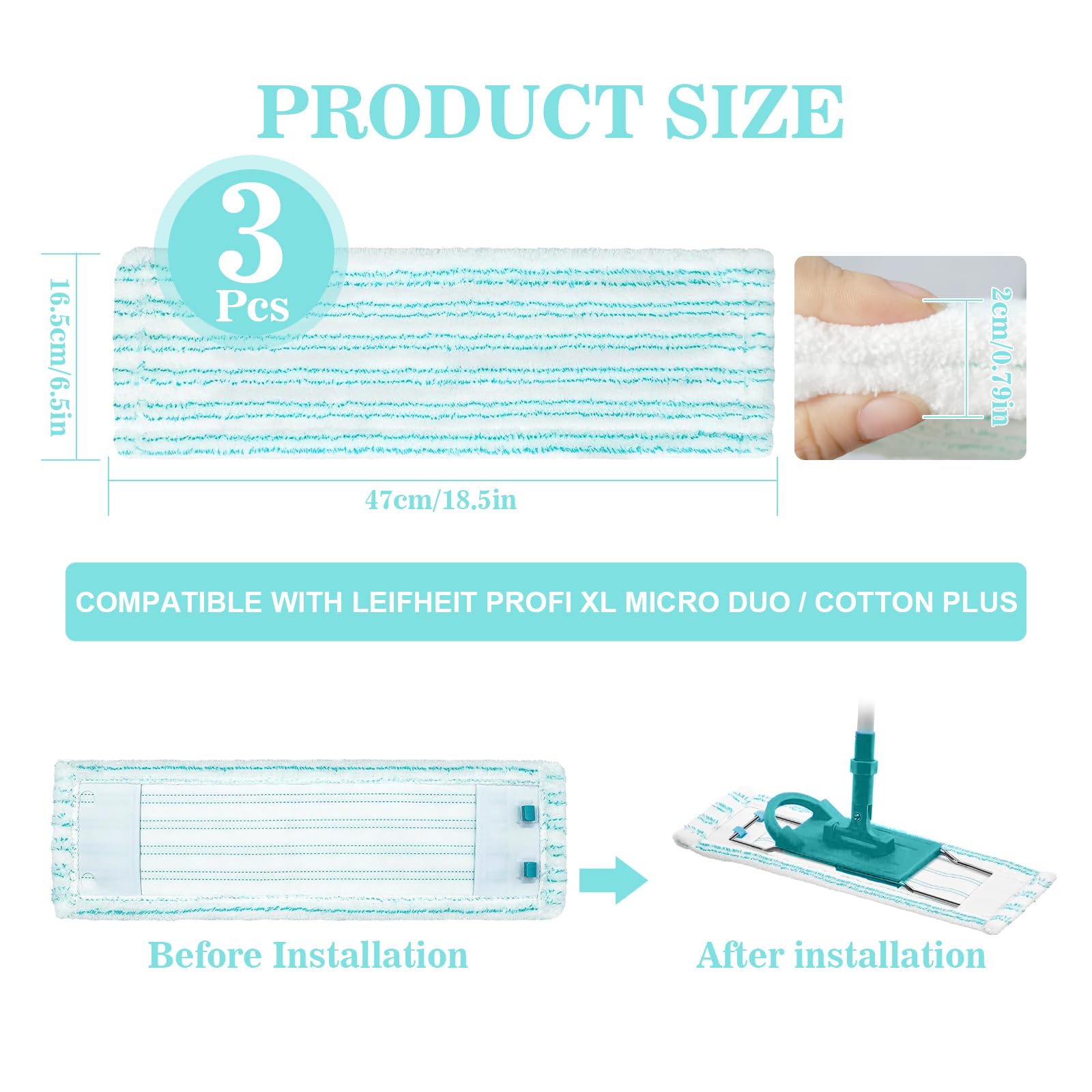 Serpillière Nettoie Tout Lavette Sols Durs Lot De 3 Housses Serpillère Microfibre Leifheit - / Cotton Plus - Absorption Maximale - Pour Tous Les Sols Compatible Profi XL Micro Duo Nettoyage Sol Carrelage Parquet Serpillères de rechange - WOSHITE - SCT23A-15 - 100% Micro Fibre... Lot 2 serpillères XXL Éléphant fluo L.100 x l.70 cm Utilisation polyvalente : convient à différents types de sols, y compris les sols en bois dur, en parquet, en pierre et en carrelage. R.SIGA Balai en icrofibre professionnel de 45,7 c pour nettoyage du... [Kit pratique] comprend 2 pièces pour un nettoyage continu sur différentes surfaces de sol, offrant des accessoires pratiques et pratiques. Dimensions du produit : environ 48 x 17 cm. [Absorption exceptionnelle] Les fibres ultra-fines assurent une absorption supérieure de l'eau et de la poussière, tout en gardant les sols impeccables., Ajustement précis : Caractéristiques techniques : Type d'article : tête de balai pour Profi XL Matériau : fibre Poids : environ 178,00 g.