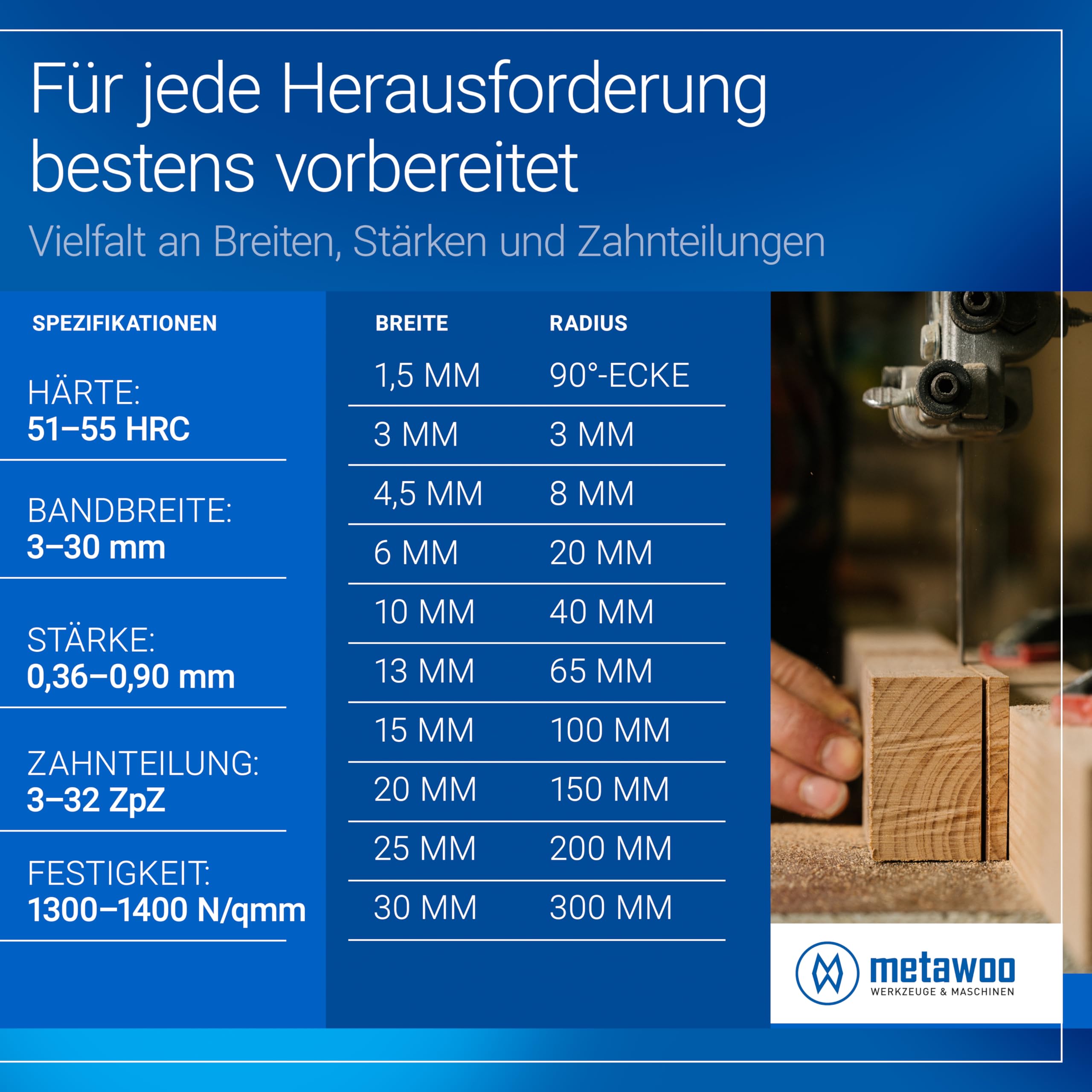 Scie Ruban Coupe Courbe Bois Orta Lot De 3 Lames De Scie à Ruban Flexback - 1 790 X 10 X 0,65 X 6 Dents Par Pouce - Convient Pour Bois Souple Et Dur, Bois De Chauffage Lame Scie Atelier Bricolage 3 pièces lames de scie à ruban à viande 1650mm lames d'os 16 * 0.5... Affûteuse de lames de scie à ruban Woodland Mills Utilisation flexible : avec des largeurs de bande variables, des épaisseurs et des divisions dentées, nos lames de scie à ruban couvrent un large éventail d'applications, des coupes courbes fines aux coupes longitudinales puissantes. Lames de scie à ruban en carbure Apex | Pointes en tungstène pour plus... Fabriqué en Allemagne : développé et fabriqué à Stuttgart, le ruban de scie allie l'ingénierie allemande et la compréhension de l'artisanat. UTILISATION POLYVALENTE : nos lames de scie à ruban conviennent à une large gamme de matériaux selon le modèle, des bois tendres et durs au MDF, au contreplaqué et aux plaques collées aux métaux non ferreux tels que l'aluminium, le cuivre ou le laiton. Acier de qualité supérieure : fabriquée en acier à ruban de haute qualité, chacune de nos lames de scie à ruban garantit une longue durée de vie, une précision de coupe et une résistance élevées même en cas d'utilisation durable et de conditions difficiles. ORTA Lames de scie à ruban