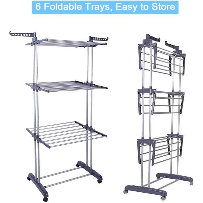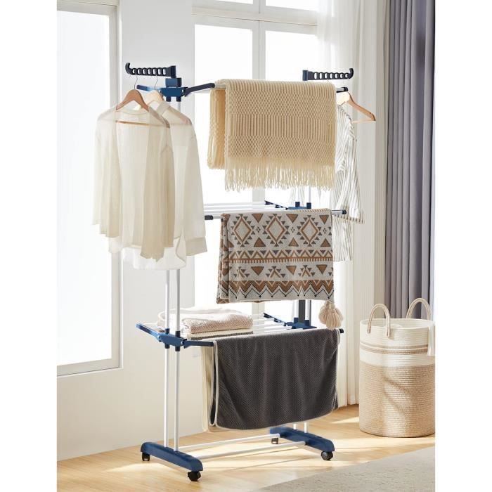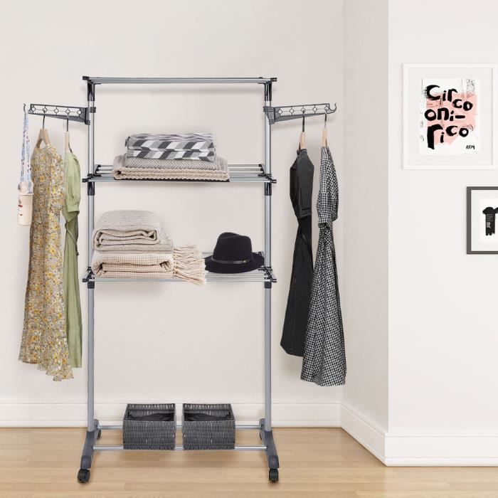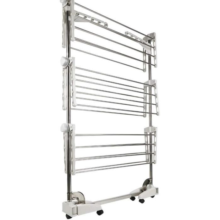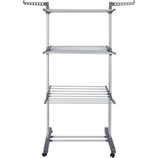 Elles augmentent également l'angle de séchage, permettant aux vêtements de mieux s'aérer et de sécher plus rapidement., Vous pouvez également étendre les vêtements à plat dessus pour éviter leur déformation. étendoir Buanderie Balcon Étendoir à Linge Pliable à 3 Niveaux Avec Ailes Et Roulettes Pliables étendoir Intérieur Extérieur Rangement Caractéristiques du Étendoir à linge Extensible : [Grande capacité] - Cet étendoir dispose de 4 niveaux, 2 crochets pivotants (avec 14 trous) et offre suffisamment de place pour les vêtements, les serviettes, les couettes, les chaussures et les chaussettes. [Grande capacité] - Cet étendoir dispose de 4 niveaux, 2... Lorsqu'ils ne sont pas utilisés, ils se plient facilement pour économiser de l'espace., Ce que vous recevrez : Étendoir à Linge Pliable *1Kit de montage *1Instructions de montage/utilisation *1Détails du produit :Dimensions du produit (déplié) : 75 x 64 x 170 cmDimensions du produit (plié) : 75 x 49 x 170 cmDimensions de chaque étendoir : 72,6 x 63,5 cmMatériau : Acier inoxydable, plastiqueCharge maximale supportée : 20 kgCaractéristiques du Étendoir à linge Extensible : [Grande capacité] - Cet étendoir dispose de 4 niveaux, 2 crochets pivotants (avec 14 trous) et offre suffisamment de place pour les vêtements, les serviettes, les couettes, les chaussures et les chaussettes. L’étagère du bas peut accueillir des chaussures. Par exemple, vous pouvez le déplacer du balcon au salon ou de l'intérieur à la cour extérieure. [Ailes rotatives] - La conception avec ailes rotatives rend l'étendoir extrêmement polyvalent. [Amovible et verrouillable] - Les 4 roulettes vous permettent de déplacer l’étendoir partout ; 2 des roulettes sont équipées de freins pour le maintenir en place. [Fonction pliable] - L'étendoir tout entier peut être plié, ce qui permet un rangement facile lorsqu'il n'est pas utilisé. Vous pouvez le placer sur le balcon, la terrasse, la buanderie ou le couloir. Etendoir a linge 4 niveaux Etendoir a linge 4 niveaux : la sélection produits Leroy Merlin de ce jeudi au meilleur prix ! Retrouvez ci-après nos 97 offres, marques, références et promotions en stock prêtes à être livrées rapidement dans nos magasins les plus proches de chez vous Les ailes peuvent être orientées selon vos besoins, facilitant le séchage de vêtements de différentes formes et tailles. [Étendoir sur Roulettes] - Équipé de 4 roulettes en bas, cet étendoir est facile à déplacer d'un endroit à l'autre, aussi bien à l'intérieur qu'à l'extérieur. [Facile à monter] - Grâce à sa structure simple, aux pièces numérotées et aux instructions illustrées, cet étendoir à linge peut être monté par une seule personne en moins de 30 minutes. Etendoir À Linge Évolutive, Séchoir À Vêtements 3 Niveaux, Sechoir À