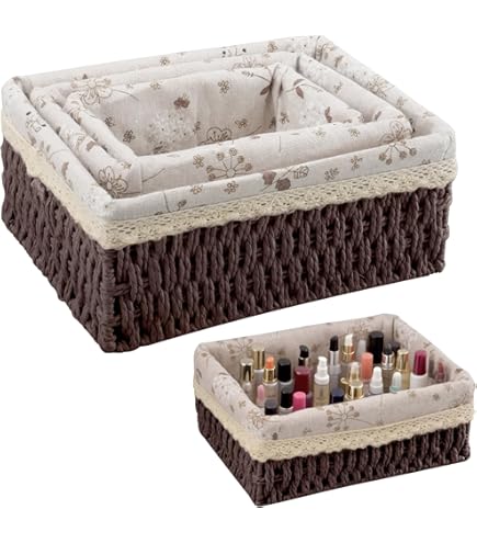 Taille M : 22 x 16 x 10 cm. Lot de 3 paniers en herbes marines naturels ARAPAIMA 【Lot de 3 paniers de rangement】: ce lot contient 3 paniers de rangement de différentes tailles (18 x 12 x 9 cm, 22 x 16 x 10 cm, 26 x 20 x 12), qui peuvent stocker les jouets des enfants, chaussettes, cravates, cosmétiques, clés et autres articles de manière classée Paniers Corde Papier Salon Salle De Bain Lot De 3 Paniers De Rangement En Liège Et Feutre Marron H30 | Maisons Du Monde Lot 3 Paniers Bohème Marron Dimensions : Taille L : 26 x 20 x 12 cm. Contenu de la livraison 1 grand panier tissé. Idéal pour les décorations murales de style africain, rustique ou Bohémienne Panier de décoration murale en rotin du Vietnam, paniers décoratifs tissés à la... Ces paniers de rangement classiques sont à la fois pratiques et décoratifs, et sont un cadeau attentionné pour les parents et les amis Non toxique, inodore et bords tranchants, options de rangement belles et sécurisées pour la maison Matériau. Papier · Marque. KiKiHong · Forme. Rectangulaire · Dimensions du produit. 26P x 20l x 12H centimètres · Style. Rustique · Nombre de pièces. 3 Service après-vente : Si vous avez des questions, n'hésitez pas à nous contacter Nous vous répondrons dans les 24 heures et vous aiderons rapidement Remarque : 1., Les mesures étant prises à la main, les tailles indiquées peuvent varier de 1 à 2 cm., 2., Des différences de couleur peuvent apparaître en raison des différences de moniteur. 1 panier tissé de taille moyenne., 1 petit panier tissé. Design tendance : design naturel élégant, facile à intégrer dans différents styles d'intérieur, ajoutant de la chaleur à l'espace Matériau : corde en papier., Style : rustique., Quantité : 3 paniers. 【Pratique】 : le panier tissé à la main est conçu dans une taille exquise et convient à tous les types de étagères de rangement et d'armoires.