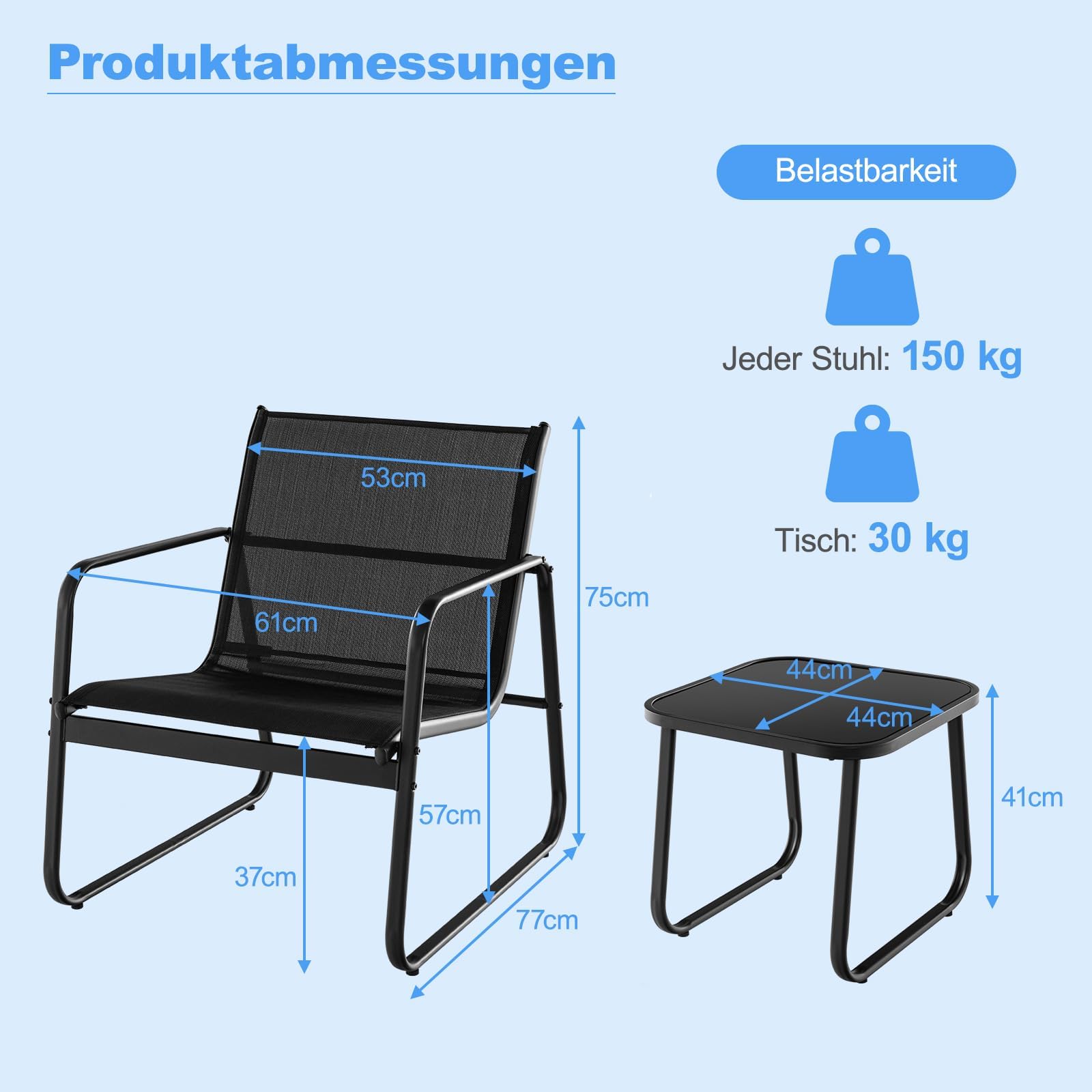Housse Pour Meubles De Jardin - Imperméable - 130 X 71 Cm - En... En outre, la table basse compacte mais fonctionnelle permet de prendre facilement des boissons ou des collations. Dimensions de la table basse (L x l x H) : 44 x 44 x 41 cm. Élégante et fonctionnelle : la table basse est le point fort : dans cet ensemble de balcon se trouve une table basse pratique sur laquelle vous pouvez facilement mettre des collations et des boissons à portée de main. Hauteur d'assise : 37 cm Charge maximale de la chaise : 150 kg. Le siège ergonomique avec tissu d'assise respirant assure plus de confort et moins de chaleur lorsque vous êtes assis. Le plateau de table en verre trempé noir est fixé avec quatre amortisseurs antidérapants et facile à nettoyer. COSTWAY Ensemble De Meubles 3 Pcs De Patio Cadre En Métal Charge 150KG Salon De Jardin 2 Chaises 1 Table Basse Avec Tissu Respirant Et Appui Tete Pour Jardin Balcon Gris 84229442 Contenu de la livraison : 2 chaises., 1 table. Cadre en métal robuste pour une grande stabilité. Mobilier Terrasse Compact Confortable Gran Vida® - Ensemble De Balcon 3 Pièces - Mobilier De Jardin - Chaises Table Et Chaise De Jardin Exterieur 2 Personnes Cet ensemble de meubles de jardin 3 pièces sera un bel ajout à votre jardin, piscine, etc. Plateau de table en verre trempé pour un entretien facile Les repose-pieds réglables augmentent la stabilité Idéal pour jardin, piscine, balcon, etc. Et le cadre en métal robuste garantit que les chaises sont assez stables. RELAX4LIFE Lot de 4 Chaises de Jardin en Textilène, Fauteuil Gris avec... Respirant et durable : le tissu idéal pour l'extérieur : le siège est fabriqué en tissu de haute qualité, résistant à la déchirure, résistant à la décoloration, séchage rapide et respirant. Matériau : métal, tissu, verre trempé Dimensions de la chaise (L x l x H) : 77 x 61 x 75 cm. Design polyvalent pour tous les espaces extérieurs : avec son aspect moderne et élégant, l'ensemble de balcon 3 pièces est parfait pour différents espaces extérieurs tels que les jardins, les zones de piscine, les balcons et bien plus encore. Même pendant les chaudes journées d'été, vous ne transpirerez pas et les chaises résistent même dans le monde extérieur changeant. Traverses à vis de la chaise pour un montage facile. Les repose-pieds réglables augmentent la stabilité de la table et en font un meuble magnifique et utile.
