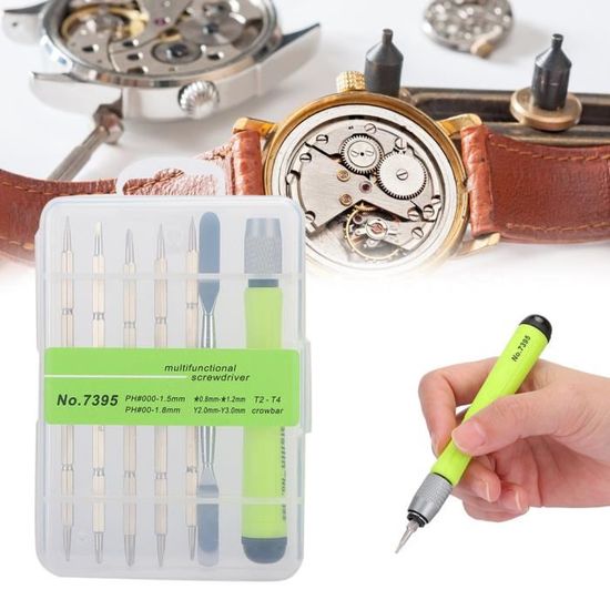 Tournevis Précision Kit,25-in-1 Mini Kit de Torx Tournevis Clés Allen Mini tournevis lunettes ; Marques · AHLSEN(1). AIPERQ(7) ; Matières. Acier(65). Plastique(39) ; Empreinte de la tête. Cruciforme(56). Torx(54 Lot Tournevis Précision Lunettes Téléphone Bijoux Lot De 3 Tournevis De Précision Pour Réparation Téléphone Portable PC Tournevis Anti-dérapant Jeu de tournevis : le paquet comprend 6 tournevis de précision multi-outils, pratiques à transporter et faciles à utiliser. Il est également idéal pour réparer d'autres objets tels que des jouets, des appareils électroniques. Kal-Kit Tournevis De Précision 16 En 1, Mini Tournevis Montre Pour Réparation De Lunettes Et Montres, Petit Tournevis Pour La Micro Mécanique, Set Complet De... 60 mm de longueur x 5 mm de diamètreMatériau de qualité supérieure : fabriqué en acier inoxydable à haute résistance, ce qui rend le tournevis antirouille. Excellent service : si vous avez des questions, veuillez nous contacter, nous résoudrons votre problème dans les 24 heures Conception antidérapante : ce tournevis à lunettes est conçu avec une texture antidérapante, vous vous sentirez à l'aise tout en le tenant pour fixer vos lunettes et vous permet de le saisir fermement et facilement. 60 mm de longueur x 5 mm de diamètre