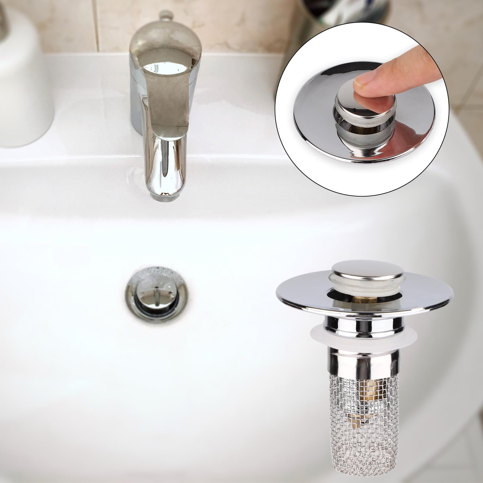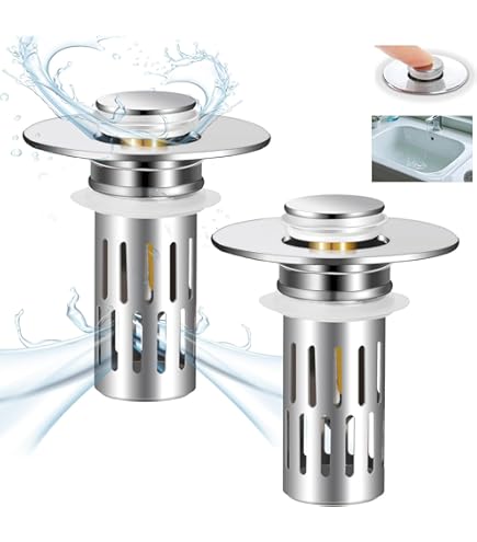 Clogging basket that captures hair and other debris, preventing them from entering the drain. Not just for bathroom sinks, can also be used in kitchens and laundry rooms, making it a multi-purpose solution for all your drainage needs Megory Sink Plug Replacement, Pop up basin plugs,Universal sink stopper, Stainless Steel Drain for Kitchen and Bathroom,Bath,Basin(A Facilitatek Sink Stopper, Facilitatek Drain, Universal Stainless Steel Floor Pop Up Drain Strainer, for Sinks, Bathtubs, Showers & Floor Drains Product Specifications Name: Stainless Drain Filter Color: Silver Material: Stainless Steel Weight: 37g/46g Size: Approximately 55 x 50 x 33 mm (2., 2 x 2 x 1., 3 inches) Package Contents 1/2/4*Drain Filter NOTES Please allow 1-5g/1-2cm differences due to manual measurement. Pop-Up Design: This push to bounce core for sink is designed to catch hair and prevent clogging in bathroom sinks. Filtre Anti-cheveux Acier Inox Générique Facilitatek Sink Stopper, 3-in-1 Pop-Up Stainless Steel Drain Bouchon éviers Color may not appear as exactly as in real life due to variations between the computer monitors. Easy Set-Up And Cleaning: Installing a pop up sink drain filter is effortless. Upgraded 2-In-1 Design: The hair catching drain plug features an anti-clogging basket inside, combining a stopper and a strainer in one. Simply replace the old sink plug with the new drain plug