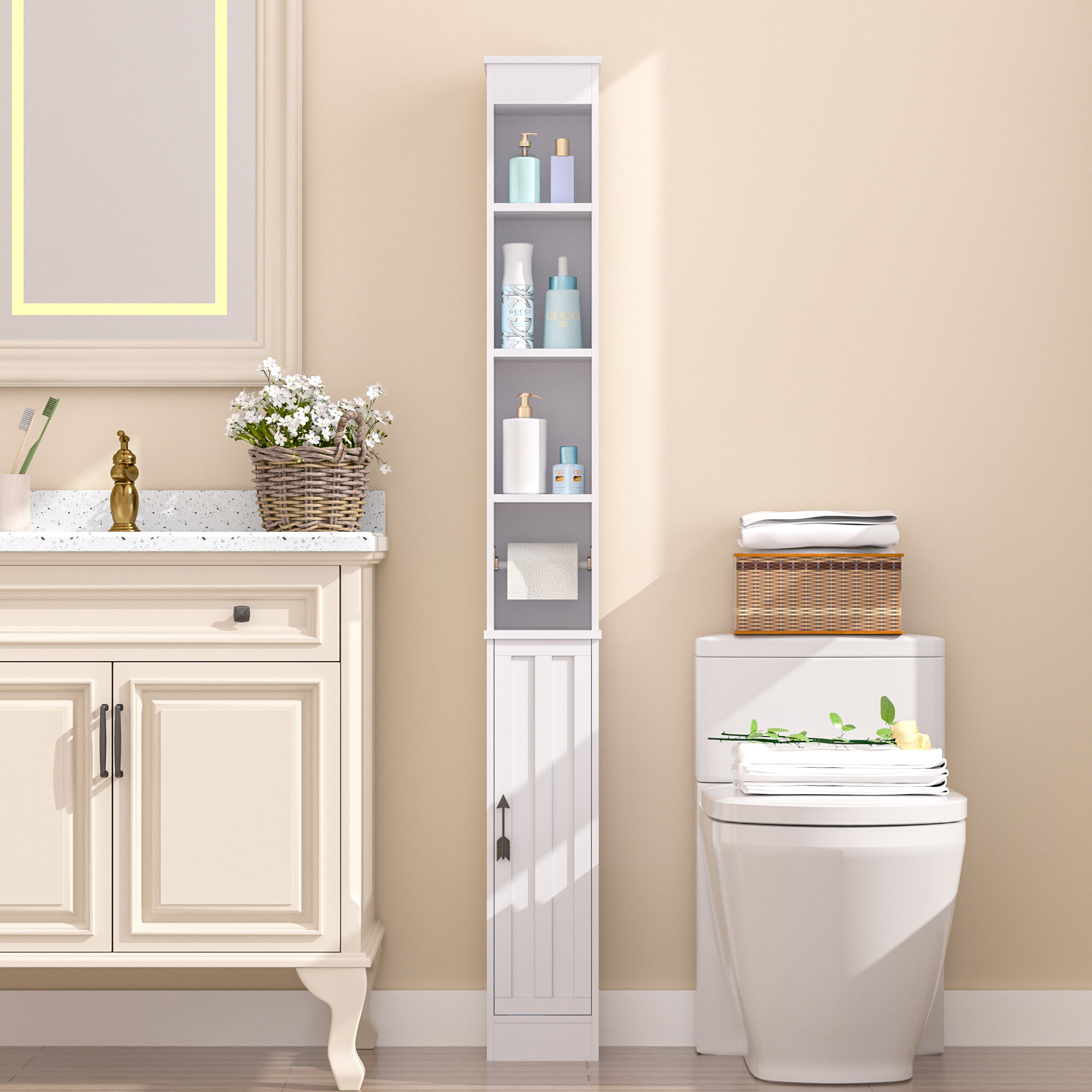 Crochets latéraux pour un accès facile et une suspension sans effort. Armoire Salle Bain Armoire Toilette Haute En Bamboo Naturel, Meuble De Salle Bain Solide, 3 Étagères Réglable De Rangement Rustique Cuisine Salon - 63 X 26 X 170 Cm Armoire Blanche MDF Rangement Construction sûre et robuste : la base stable aide à maintenir l'armoire de salle de bain stable dans différentes pièces. Gardez tous les articles organisés : l'armoire de salle de bain haute dispose de 1 étagère supérieure, 2 étagères ouvertes et 2 armoires fermées qui peuvent soit présenter ou cacher des objets quotidiens. Il utilise de manière optimale l'espace vertical et s'adapte bien dans n'importe quel coin de votre pièce. Plus important encore, le dispositif anti-basculement empêche le basculement et offre une sécurité supplémentaire. COSTWAY Meuble Salle de Bain, Armoire de Rangement avec 2 Porte-Papier Toilette, Portes Coulissantes, pour Brosse WC, Étagères Réglables, Placard, pour Petits Espaces, 20 x 60 x 80 cm (Blanc La barre de papier toilette et un crochet latéral peuvent être utilisés pour accrocher des serviettes ou d'autres choses importantes. Fermetures magnétiques pour une fermeture sûre., Assemblage requis. Sert d'armoire de salle de bain, d'étagère de présentation, d'armoire de rangement et plus encore Étagères réglables sur 3 niveaux pour personnaliser l'intérieur. Vous pouvez également retirer toutes les étagères mobiles pour créer plus d'espace de rangement. En outre, la surface lisse de l'armoire est facile à nettoyer avec un chiffon doux. Lark Manor™ Armoire de rangement haute et étroite avec portes et... Armoire De Salle De Bain Avec Portes Miroir, Étagères Réglables, 16,5 X... Il sera non seulement un complément idéal à votre salle de bain, mais aussi à votre salon ou votre cuisine. Spécifications: 2 étagères ouvertes et 2 armoires à portes simples pour de nombreuses options de rangement. Caractéristiques techniques : Couleur : noir / blanc / marron gris / vintage Matériau : MDF + bois Dimensions du produit (L x l x h) : 20 x 20 x 179 cm., Charge maximale : 25 kg., Poids brut : 12,5 kg., Poids net : 11 kg. Sa forme étroite s'adapte aux petits espaces.