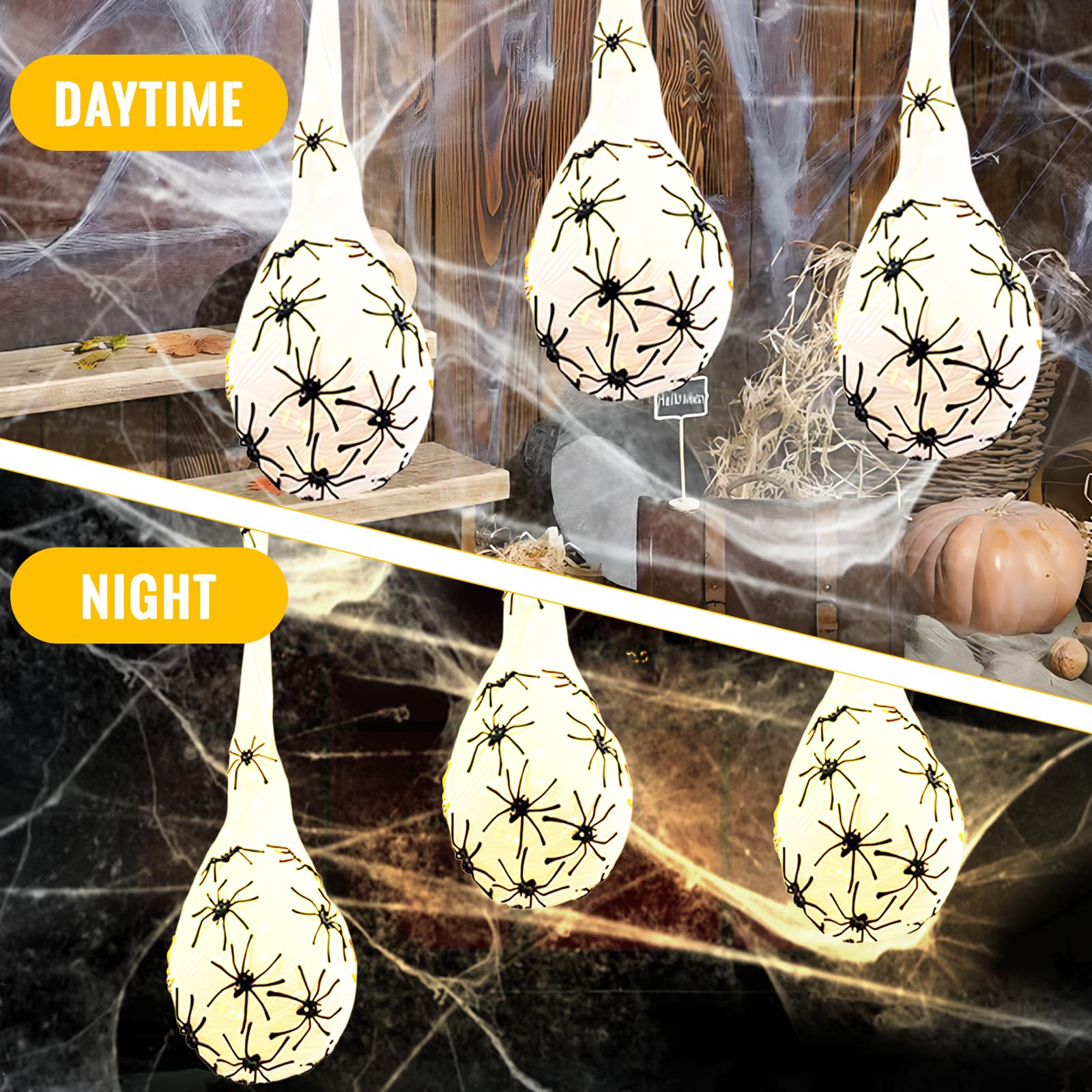 Lot de 3 œufs d'araignée lumineux : contient trois sacs décoratifs suspendus et lumineux, chacun mesurant jusqu'à 90 cm de long. Découvrez nos offres de décoration d'Halloween parmis une large sélection de produits au meilleur prix ✔️ Livraison gratuite ✔️ Entreprise française... Elles sont parfaites pour une fête effrayante, un jardin d'Halloween, une décoration de la maison ou même une fête costumée. Décoration d'Halloween effrayante : ces œufs d'araignée réalistes sont fabriqués en filet de coton artificiel blanc et sont recouverts d'une variété d'araignées noires terriblement réalistes. Toile D'araignée Lumineuse MOBUTOFU Lot De 3 œufs Lumineux En Toile D'araignée Pour Décoration D'Halloween, Lanternes D'extérieur En Plastique Violet Oeufs Araignée Lumineux Led Suspension Basculez facilement entre les modes en appuyant sur un bouton et créez une atmosphère nocturne époustouflante et effrayante. Ajoutez une touche effrayante à votre décoration d'Halloween avec ce lot de trois araignées lumineuses avec des sacs à œufs. Elles disposent de LED jaune chaud intégrées et de 21 araignées noires qui sont suspendues au filet et créent un effet visuel effrayant. [Design convivial] Ils sont fabriqués à partir de matériaux légers et de haute qualité, portables et faciles à présenter. Vous n'avez pas besoin d'un support et peuvent donc être accrochés aux arbres ou aux vérandas. La conception détaillée des araignées avec leurs sacs à œufs lumineux attirera tous les regards de vos invités. Ils créent une atmosphère effrayante qui s'adapte parfaitement au thème d'Halloween et fera crier vos invités et les collectionneurs de bonbons et créeront instantanément une ambiance de fête Transformez le salon intérieur, les jardins extérieurs, les installations de maison obsédantes, les porches ou les branches d'arbre en espace horro avec ces décorations lumineuses à suspendre en toile d'araignée d'Halloween Les lumières LED intégrées créent une lueur étrange dans l'obscurité et créent une atmosphère parfaite pour vos fêtes d'Halloween. Elles sont recyclables et peuvent être conservées pour beaucoup d'autres Halloween Lot De 3 Œufs D'Araignée Suspendus À Led - Toile D'Araignée