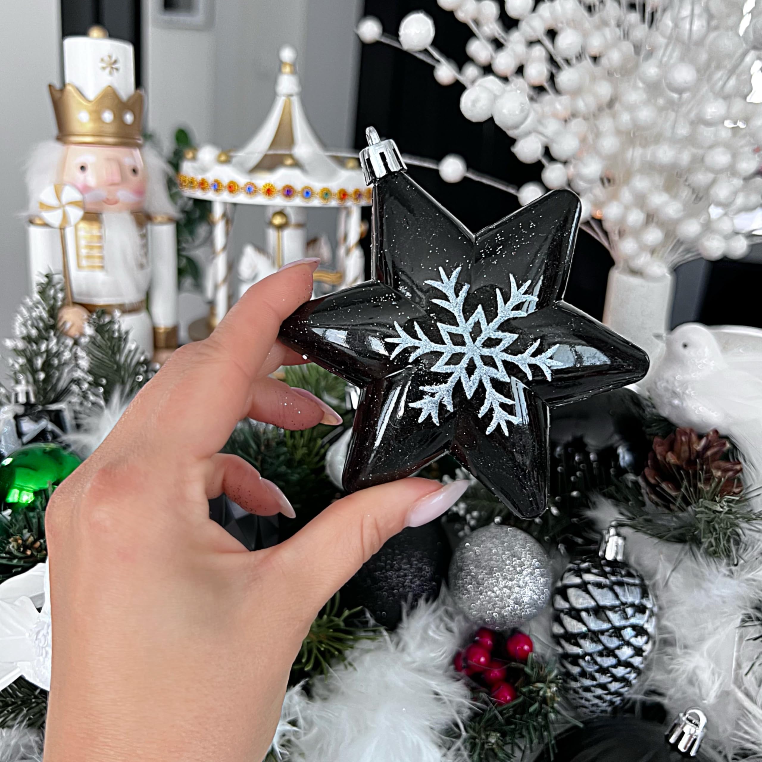 Boules Noël Incassables Lot De 30 Boules De Noël En Plastique 6 Cm - Décoration Sapin Thème Traditionnel Noir Et Blanc Lot Boules De Noël 40mm 12X Boules De Noël, Boules De Sapin De Noël En Plastique Incassable 12X Boules De Noël, Boules De Sapin De Noël En Plastique Incassable... * Rangement polyvalent : chaque lot est livré avec une boîte de rangement pratique, permettant une organisation facile et un rangement sûr des ornements. *Polyvalence décorative : parfaites pour une utilisation en intérieur et en extérieur, ces boules peuvent améliorer votre décoration de vacances sur les arbres de Noël, les guirlandes, ou même comme centres de table, créant une ambiance festive dans toute la maison. Couleur : or, bleu clair, noir, bleu, bronze, café, bordeaux, vert, violet lavande, rose, rouge, or rose, argent. Caractéristiques : * Ensemble complet : ce lot de boules de Noël comprend 34 décorations magnifiquement conçues, chacune avec un diamètre de 40 mm, ce qui le rend parfait pour décorer une variété de sapins de Noël et de décorations festives. Contenu de l'emballage : 1 lot de boules de Noël. Ensemble complet : ce lot de boules de Noël comprend 34 décorations magnifiquement conçues, chacune avec un diamètre de 40 mm, parfait pour orner votre sapin de Noël ou vos décorations festives. Saison : les couleurs vives de ces ornements capturent l'essence de la saison des vacances, ajoutant une touche chaleureuse et accueillante à toute célébration ou événement. Pas facile à casser, parfait pour décorer votre intérieur et ajouter une touche festive à votre sapin de Noël. Nous avons fait de notre mieux pour utiliser la palette de couleurs de Noël la plus traditionnelle possible pour cette boule de Noël