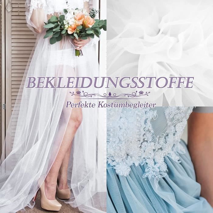 Grâce à sa construction sans couture, le tulle ne s'effiloche pas et est donc idéal pour les décorations délicates ou les détails de vêtements. Pourquoi choisir notre rouleau de tulle ? ️ Matériau en polyester de haute qualité : doux, léger mais extrêmement durable – Idéal pour créer des jupes tutu, des nœuds, des chemins de table, des arcs ou des emballages cadeaux. ️ Design à mailles fines : la maille ultra fine renforce la texture élégante, est résistante à la déchirure et lavable – Parfait pour les décorations durables. Rouleaux de tulle spacieux fabriqués à partir de matériaux de haute qualité : nos rouleaux de tulle offrent une surface de 30 cm × 91,5 m et conviennent à une variété de projets. Combinez différentes couleurs de tulle pour une mise en scène féerique. 30CM x 10M Organza Tulle Rouleau Bobine avec Paillettes Chemin de Table... Facile à personnaliser : combinez les rouleaux de tulle avec des accessoires de couleur ou utilisez-les seuls pour créer une élégance intemporelle. Commandez dès maintenant et laissez libre cours à votre imagination Rouleau de tulle 30 cm x 91,5 m – Tissu décoratif polyvalent pour des créations de rêve Vous êtes encore à la recherche d'un tissu en organza simple, beau, léger et confortable pour laisser libre cours à votre créativité ? Notre rouleau de tulle en polyester de qualité supérieure (30 cm x 91,5 m) est le choix parfait pour les projets de bricolage, les décorations de mariage, la décoration de fête et l'artisanat élégant. Ruban Décoratif Fête Rouleau De Tulle - 30 Cm X 91,5 M - Ruban En Organza - Pour Mariage, Fête, Tutu, Jupe, Bricolage, Couture, Organza à Mailles Fines - Bleu Tulle Polyester Maille Fine Bricolage 3 COUNT ROULEAU De Treillis Bobine Ruban Tulle Tissu Décorations... Le tulle crée une ambiance romantique avec son aspect léger, que ce soit comme couronne, décoration de chaise, rideau ou décoration de table. Votre créativité n'a pas de limites Il est parfait pour les projets d'artisanat, les décorations de fête ou les intérieurs romantiques. Grâce à son excellente malléabilité, il est facile de créer des nœuds, des arcs et des éléments 3D - Parfait pour des cadeaux personnalisés ou des décorations uniques Petit Ruban Tulle Rouge Décoration | Tulle Fin et durable : le design en maille ultra fine donne au tulle une texture élégante tout en augmentant la durabilité. Caractéristiques techniques : - Dimensions : 30 cm de large x 91,5 m de long., Couleur : blanc pur. - Matériau : polyester lisse et respectueux de l'environnement. - Fleurs et cadeaux : ajoutez un look élégant à vos bouquets ou présentations avec le filet en tulle délicat.