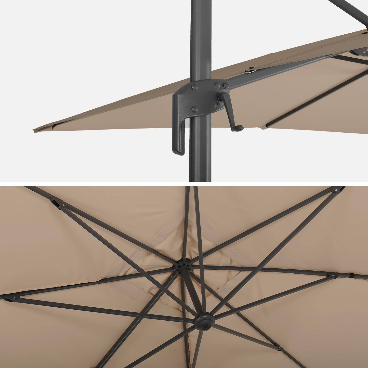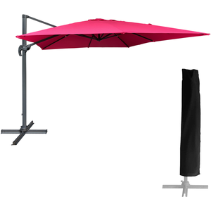 Sa grande envergure et sa toile traitée anti-UV feront de ce parasol votre meilleur allié pour passer l'été. Housse Parasol Parasol Déporté Rouge 300cm En Alu Avec Manivelle Parasol Jardin Grande Ombre Toit Métal Description : Les beaux jours sont de retour ? Protégez-vous du soleil grâce à votre parasol déporté MOLOKAI : sa belle envergure et sa toile en polyester d'une bonne opacité feront de ce parasol votre meilleur allié pour passer l'été. Sa structure en aluminium recouverte d'une peinture epoxy et sa toile déperlante permettront au parasol de résister aux conditions extérieures. En plus d'un... Détails : Dimensions : - Parasol : L 4 × l 3 × H 2,63m- Pied : L 100 × l 100 × H 4,5cm- Mât : Ø 53 × Ép. 77mm- Barre oblique: l 25 × L 40mm- Baleines : Ø 14 × Ép. Parasol déporté octogonal ø 350cm - antibes - beige - parasol excentré... Assurez-lui un maintien au sol avec nos dalles de lestage à remplir également en vente chez Happy Garden. Sa structure en aluminium recouverte d'une peinture epoxy et sa toile déperlante permettront au parasol de résister aux conditions extérieures. 24mm- Housse : Ø 47 à 65cm (de haut en bas) × H 253cm Matières : - Toile : polyester, 200g/m²- Mât et barre oblique : aluminium, peinture epoxy- Pied : acier- Baleines : aluminium- Housse : polyester, 140g/m² Couleurs : - Toile : bleu- Mât, barre oblique, baleines et pied : anthracite- Housse : noire Informations complémentaires : - Type de parasol : déporté- Forme de la toile : rectangulaire- Nombre de baleines : 8- Toile et housse déperlantes- Aération au sommet- Système d'ouverture / fermeture : manivelle- Système d'inclinaison : poignée- Système de rotation : pédale- Rotation : 360°- Forme du pied : croix- Protection solaire : traitement UV20+- À monter (notice incluse) Bon à savoir : Les dalles nécessaires pour lester le parasol sont vendues séparément Oviala Parasol déporté 3x4m en Aluminium écru En plus d'un design très actuel grâce à ses couleurs et sa forme rectangulaire, votre parasol est très pratique : il est inclinable et rotatif à 360°. Protégez-vous du soleil grâce à ce parasol déporté carré rotatif, inclinable et de grande envergure.