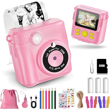 Cet appareil photo numérique est livré avec cinq crayons de couleur. Uleway Appareil photo nuérique instantané pour enfants, appareil photo... Cadeau pour enfants Cet appareil photo pour bébé est le cadeau idéal pour les enfants de 3 à 14 ans, pour un anniversaire, le Nouvel An, Noël, Thanksgiving ou toute autre occasion. Impression instantanée sans encre Cet appareil photo instantané pour enfants est à la fois un appareil photo numérique et un appareil photo instantané. D' Emploi HiMont Appareil Photo Instantané Pour Enfants HD/1080P Avec Carte De 32 Go Et Papier D'impression, Cadeau Amusant Pour Enfants De 3 à 12 Ans Appareil Photo Enfant Impression Sans Encre Stimulez l'imagination et la créativité de vos enfants Grâce à ce produit, les enfants peuvent prendre des photos couleur, enregistrer des vidéos HD 1080p et imprimer des photos en noir et blanc pour stimuler leur imagination et leur créativité. Vidéo HD 1080p et photos 24 MP Cet appareil photo Polaroid pour enfants est doté d'un objectif 24 MP et enregistre des vidéos HD 1080p, vous permettant d'immortaliser chaque instant important de votre enfance. Les enfants peuvent prendre et imprimer des photos, puis dessiner avec les crayons pour stimuler leur imagination et leur créativité. La reproduction des couleurs est très naturelle, l'appareil est agréable à tenir et son design adapté aux enfants est impressionnant. 🎁【Contenu de l'emballage】1 appareil photo Polaroid pour enfants, 1 carte mémoire de 32 Go, 2 rouleaux de papier pour imprimante, 6 crayons de couleur, 1 câble d'alimentation, 1 câble USB, 1 étiquette et 1 manuel d'utilisation. Appareil photo multifonction pour enfants Ce mini appareil photo instantané pour enfants offre une vidéo HD 1080p, un zoom numérique 16x, une fonction selfie, la prise de vue en rafale, cinq jeux, des cadres animés, des filtres et un lecteur MP3, répondant ainsi aux besoins variés des enfants. La carte SD 32 Go intégrée permet de stocker des milliers de photos et de vidéos en continu. Les enfants peuvent agir en tant que petit photographe pour prendre des photos et des vidéos, décorer les photos avec des stylos de couleur et des cadres amusants. C'est un jouet qui divertira votre enfant et un cadeau idéal pour les enfants de 3 ans et plus pour leurs anniversaires et Noël Contenu : 1 appareil photo grand public, 1 carte mémoire 32 Go, 2 rouleaux de papier pour imprimante, 6 crayons de couleur, 1 câble d'alimentation, 1 câble USB, 1 étiquette et 1 manuel d'utilisation. Cet appareil photo pour bébé est un cadeau idéal pour les enfants de 3 à 14 ans, pour un anniversaire, le Nouvel An, Noël, Thanksgiving ou toute autre occasion. Gofunly Appareil Photo Instantané Enfants, 1080P Appareil Photo