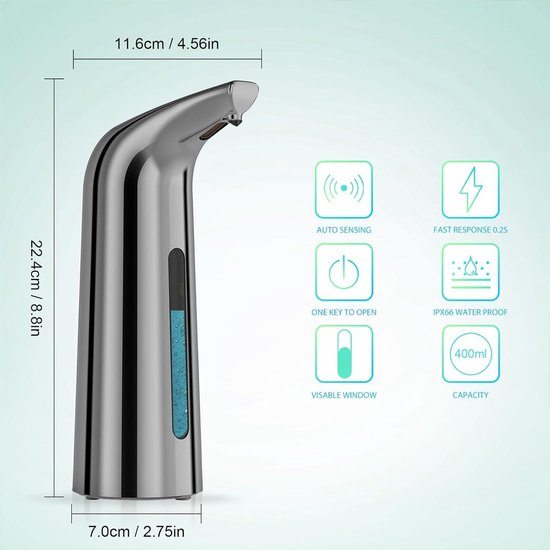 Caractéristiques : Matériau : ABS + PP., Capacité : 400 ml. Interface de charge : type C. Remarque : Les mesures étant prises à la main, les tailles indiquées peuvent varier de 1 à 2 cm. Affichage du niveau de liquide : affichage du niveau de liquide de la lumière ambiante, vérifiez le savon pour les mains à tout moment. Lionel Green Street Anecdote ceinture distributeur de liquide hydroalcoolique ch Distance de détection : 0 à 70 mm. Bouchon en silicone étanche : empêche les bactéries d'entrer, plus hygiénique. Distributeur Gel ou Savon Automatique SANS CONTACT 700ml Mural ou Posé... La couleur de l'article peut varier de celle de la photo, en fonction des paramètres d'affichage et de luminosité de votre ordinateur. Trois façons de libérer le liquide : mousse, gel et spray peuvent être sélectionnés pour répondre à différents besoins. Dimensions : environ 127 x 127 x 55 mm. Distributeur Avec Aromathérapie Intégrée 320ml Distributeur De Savon Automatique,Distributeur Savon Mural Sans Distributeur Automatique 400 Ml Description :Le lavage des mains est impératif pendant la cuisson, si nos mains sont couvertes de graisse ou si nous avons manipulé de la viande ou de la volaille crue, le distributeur de savon sans contact peut fournir du savon de manière pratique sans contaminer vos mains. Le distributeur de savon automatique avec capteur infrarouge intelligent vous offre une expérience hygiénique, sans... Merci de ne commander que si vous acceptez cette marge d'erreur.