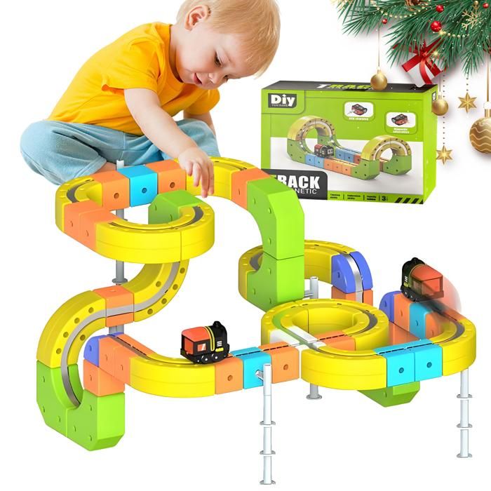De nombreuses familles optent ensuite pour un ensemble supérieur, car les enfants souhaitent souvent créer des formes plus complexes. Ce train électrique Klickrail permet des trajets suspendus inversés grâce à des connexions magnétiques sécurisées. Notre circuit à rails cliquables incite les constructeurs à faire preuve d'esprit critique lors de la conception de systèmes ferroviaires complexes. Le train est rechargeable via un port Type-C sécurisé, ce qui facilite son chargement pour un jeu continu. Jouets De Circuit Train Electrique - Circuit Train Electrique - 360 cm Configurations de voies dynamiques : Des cubes emboîtables colorés créent des tracés flexibles avec des montées verticales, des courbes et des virages multidirectionnels. Il peut grimper, dévaler des pentes, rouler latéralement et même faire des boucles à 360° à l'envers. Jouets De Circuit Train Electrique - Circuit Train Electrique - 360 cm... Ce train inversé est livré prêt à offrir et ravira les amateurs de sensations fortes comme les constructeurs innovants. Ce train peut-il vraiment grimper et rouler à l'envers ? Oui ! Le train monorail magnétique réalise des manœuvres époustouflantes qui défient les mouvements conventionnels des trains. Train Magnétique Sécuritaire Sans BPA Circuit De Train Miniature électrique De 334 Pièces Pour Enfants, Idéal Pour Un Noël éducatif. - Jeux - Jouets Train Magnetique Enfant VINGVO Circuit Voiture Enfant Piste Inclinée Cadeau Anniversaire, Jouet... Présentation cadeau exceptionnelle : Idéal pour les anniversaires et les fêtes grâce à son impressionnante démonstration d'ingénierie.