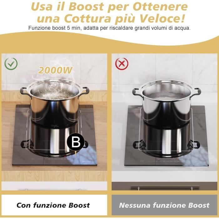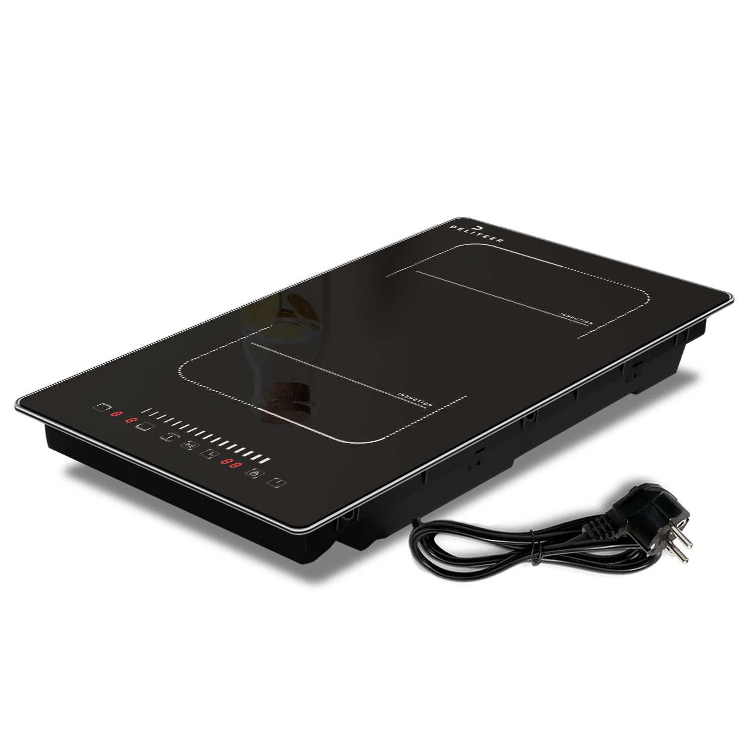 Elle est parfaite pour les cuisines modernes, les petits appartements ou les camping-cars. Hobsir Plaque Induction 2 Feux, Plaque À Induction Deux Avec Prise... Compatible avec les casseroles à fond magnétique de 12 à 22 cm. Structure en acier inoxydable avec double ventilateur pour une meilleure dissipation et durabilité. Plaque Induction Noir Verre GRACEALL Plaque à Induction Encastrable 2 Foyers 3500W, Plaque De Cuisson Électrique Avec Commande Tactile, Double Zone Avec Minuteur Et Sécurité Enfant, 230V Pour Cuisine Ou Plan De Travail Plan De Travail Cuisine Le minuteur 3 heures offre une cuisson mains libres. Avec 1500W + 2000W, cette plaque induction double chauffe rapidement et uniformément pour une cuisson économe. 【Contrôle précis avec minuterie】L'écran LED tactile permet un contrôle indépendant des zones. Les deux ventilateurs internes assurent un refroidissement efficace. 【Sécurisée et pratique pour la famille】Cette plaque à induction portable dispose d’un verrouillage enfants, d’une protection contre la surchauffe et d’une alerte “E0” en cas de récipient non compatible. Activez le verrou de sécurité enfant par simple appui long pour éviter toute utilisation accidentelle. 【Encastrable ou pose libre】Utilisation flexible : cette plaque de cuisson électrique encastrable peut également se poser sur un plan de travail grâce à ses pieds et son câble avec fiche 230V. Karinear Plaque à Induction - 2 Foyer avec Zone Flexible - Encastrable... La minuterie de 1 à 180 minutes permet de cuisiner sans surveillance avec précision. 【Design haut de gamme et nettoyage facile】Dotée d’une surface en verre vitrocéramique noir résistante aux rayures et à la chaleur, cette plaque induction encastrable 2 foyers est facile à nettoyer. GRACEALL Table de cuisson à induction à 2 brûleurs, plateau