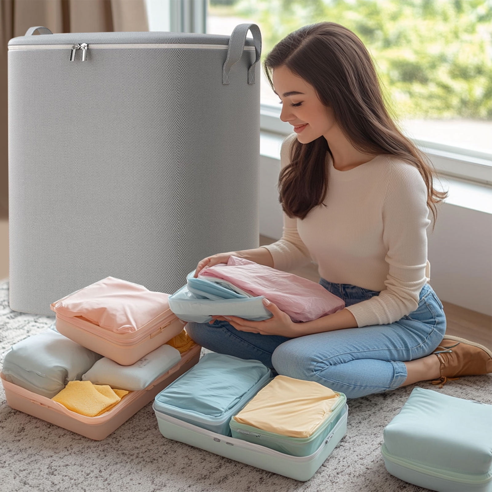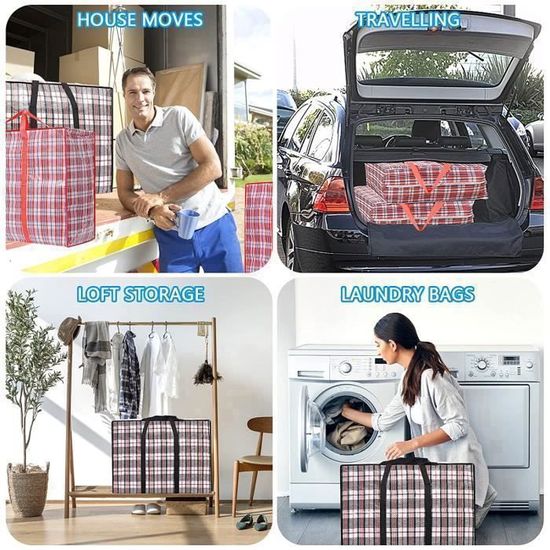 Lot de 4 grands sacs de rangement avec une capacité de 107L pour une utilisation polyvalente Fabriqué en polypropylène résistant et anti-déchirure pour une durabilité accrue Avec poignées et fermeture éclair : Ce sac de rangement est doté d'une fermeture éclair à double sens et d'une large ouverture, ce qui le rend pratique pour ranger de grands articles comme des couettes. Les poignées sont robustes et polyvalentes, renforcées par des points de croix pour une durabilité accrue. Sa conception élargie réduit la tension des mains lors du levage d... Sac Rangement Vetement Lot De 2 Sacs De Rangement 35L Avec Fermeture éclair Et Poignées, Sacs Couverture Demenagement 4CONVY Sac de Rangement Vêtements avec Fermeture Éclair - [2024