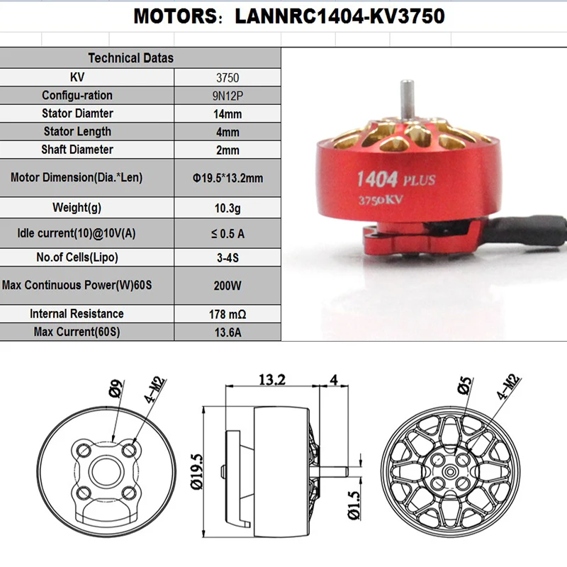 Câble : 22 AWG x 150 mm., KV : 3750., Rapport de configuration : 9N12P. Hot Sale For LANNRC 1505 PLUS Brushless Motor 3-6S Lipo for 3-4 Inch Long Distance Traversing... Courant maximal (60 s) : 18 A. Nombre de cellules (LIPO) : 4-6S Puissance constante maximale : 60 s : 336 W. Moteur Drone FPV Freestyle Racing LANNRC 1505 Plus 2650kv 3750kv Lipo Moteur Sans Balais Arbre 1,5 Lot 4 Moteurs Haute Performance Résistance interne : 96 mΩ. Article : moteur sans balais LANNRC1505 2650kv 3750kv., Caractéristiques : KV : 2650., Rapport de configuration : 9N12P. Nombre de cellules (LIPO) : 3-4S Puissance constante maximale : 60 s : 200 W. ou 4 moteurs sans balais 1505 3750 kV Ce moteur sans balais offre un nombre de poussée incroyable, des caractéristiques de vol très réactives et extrêmement fluides Diamètre de la tige : 1,5 mm., Dimensions : 21,3 x 15,5 mm., Poids : 14 g. Courant maximal (60 s) : 14 A. Livré très bien emballé et reçu plus tôt que prévu. de très bons moteurs qui s'adaptent parfaitement à ma construction Longueur du stator : 9,5 mm. Chaque moteur a été dynamique équilibré, résistant à l'écrasement, élimine efficacement les vibrations Lannrc F4 V3s Plus Flight Control And 4 In 1 45a Esc Satck Osd 2-6s 45a