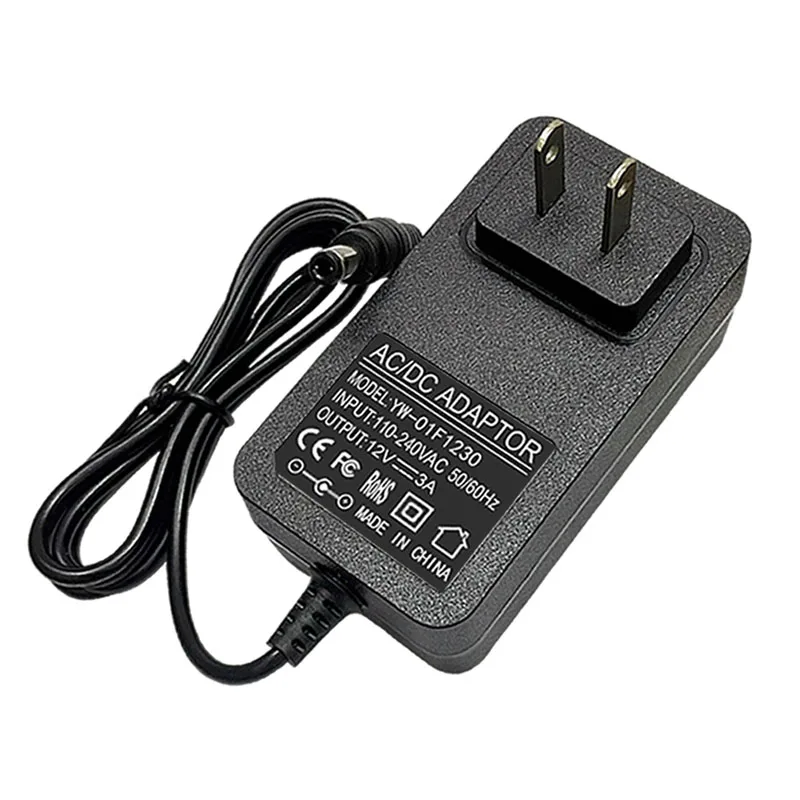 Dimensions de la prise : 5,5 mm x 2,1 mm. Optimisez l'alimentation de votre équipement avec ce chargeur 12v 1.5a, compatible avec EU, US, UK, AU, idéal pour les TV Box et les réseaux de câbles ) en fonction des différents appareils Spécifications Techniques : Entrée : AC 100-240V, 50/60Hz Sortie : DC 12V 3A (3000mA) Puissance : 36W max Fiche DC : 5,5 mm × 2,1 mm (centre +) Longueur câble : 1m Protections : Surtension/court-circuit/surchauffe Haute Qualité : Matériaux durables et conception robuste pour une longue durée de vie. Alimentation 12v 3a Adaptateur Secteur DC 12V 3A 2,1 Mm X 5,5 Mm, Adaptateur Diviseur Pour Caméra De Surveillance Alimentation Ecran Pc Câble de 1m de haute qualité: Alimentation 12V 3A 36W offre une grande flexibilité d'installation grâce à son câble de 1m en cuivre de qualité supérieure. Protection Intégrée : Sécurité renforcée contre les surtensions, courts-circuits, surchauffe et surintensités pour une utilisation sans risque. Polarité CC : Centre positif, extérieur négatif. Compatible avec une large gamme d'appareils: Cet adaptateur secteur 12 V 3 A est compatible avec la plupart des appareils électroniques nécessitant une sortie 12 V à 3 A/3 000 mA (0,1 A/100 mA - 3 A/3 000 mA), moniteur LCD, bande LED, routeur, caméra CCTV, boîtier TV, amplificateur audio, cadre photo numérique, compteur satellite numérique, pompe à eau, haut-parleur, radio, ventilateur, lampe de bureau et autres appareils électroniques Facile à utiliser et à vérifier avant l'achat: Avant d'acheter cet adaptateur secteur 12 V universel, veuillez vérifier la tension d'entrée, la puissance requise (en watts), la polarité et la taille de la prise CC de votre appareil. Plug-and-Play : Fiche DC 5,5×2,1 mm (polaire centrale positive), installation instantanée sans soudure ni câblage complexe. Idéal pour : Éclairage LED (bandes, spots), Caméras de surveillance IP/DVR, Routeurs (pour TP-Link, Netgear), modems, Haut-parleurs amplifiés, systèmes audio, Centrales téléphoniques, bornes Wi-Fi Entrée AC 100V240V 50Hz/60Hz; Sortie DC 12V 3A/3000mA 36W. Longueur du cordon 6 pieds/1.8 mètre. Taille du connecteur DC 5.52.1mm. Centre de polarité DC positif... Compatibilité Universelle : Parfait pour bandes LED, routeurs Wi-Fi, caméras de sécurité, haut-parleurs, systèmes téléphoniques et autres appareils 12V ≤36W. Cet adaptateur fonctionne uniquement avec des appareils de même polarité, garantissant une connexion sécurisée sans risque de dysfonctionnement Adaptateur d'alimentation 12 V CC 3 A/3000 mA 1,8 m, 100-240 V