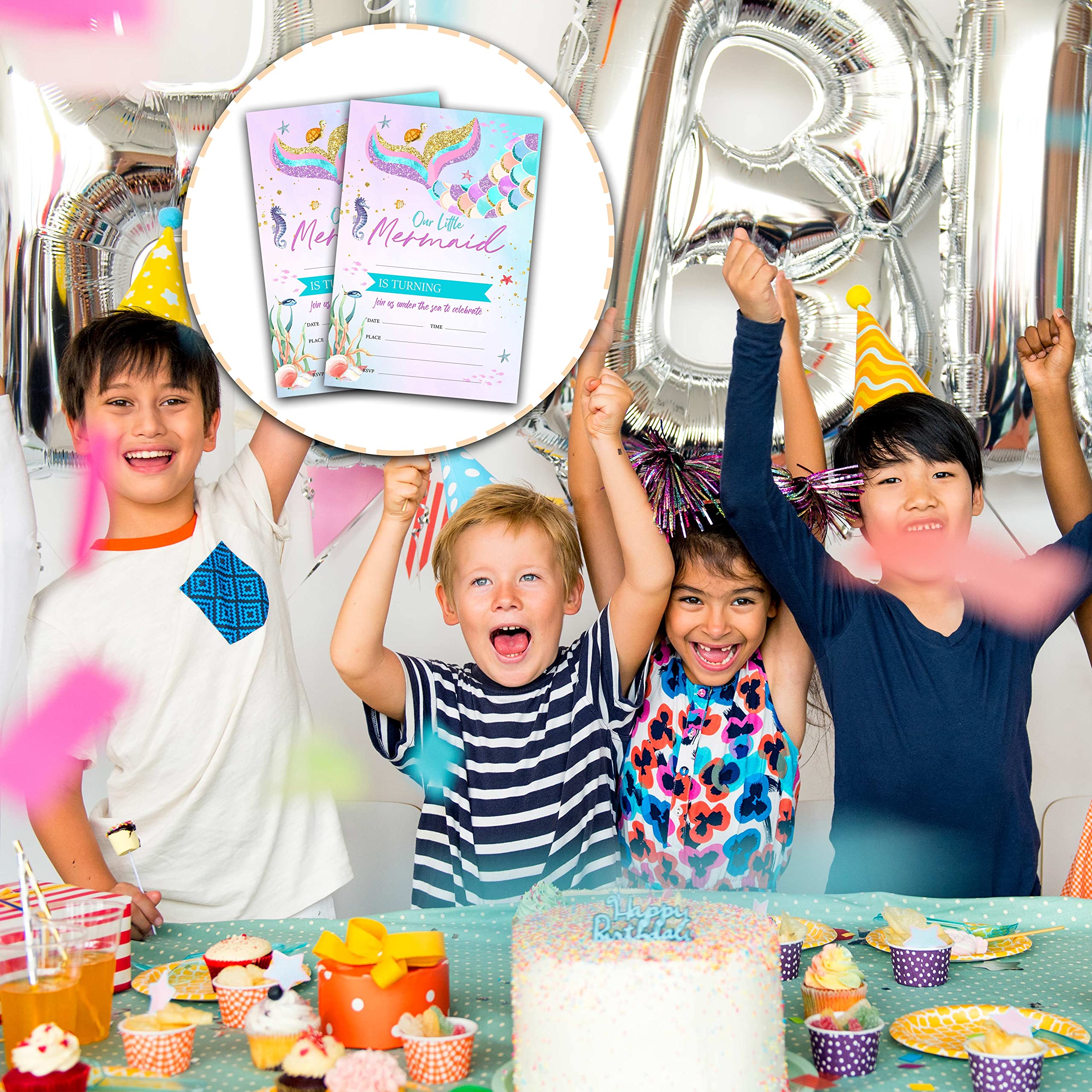 Quantité : le lot comprend 20 cartes d'invitation pour fête d'anniversaire et 20 enveloppes blanches. Carte anniversaire à imprimer - Invitation... Lot de 25 cartes - Grand format nuit mat - Avec 25 cartes pliantes... Carte Invitation Anniversaire Sirene OurWarm Lot De 24 Invitations De Fête Sirène Nacrée 3D Avec Enveloppes Pour Enfants, Filles, Anniversaire, Mariage, Fête Prénatale, Piscine, Fournitures De Fête Sur Le Thème De La Sirène Invitation Anniversaire Sirène Fille 8 Invitations Sirène Pastel et Or pour l'anniversaire de votre enfant