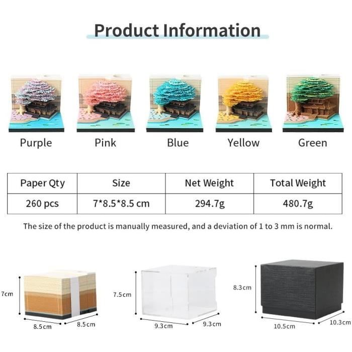 Calendrier mural 2026 féerique - Calendrier mural fantastique et Bloc-notes 3D décoratif de bureau : retirez chaque feuille et lorsque vous retirez complètement le papier anti-adhésif sur le bloc-notes 3D, une belle cabane surprise apparaîtra devant vous. Calendrier 3D Arbre Fantastique Bloc-notes 3D, Calendrier 2026 LED, Porte-stylo, Calendrier Hebdomadaire Magic Castle, Calendrier De Table, Décoration | Leroy Merlin Bloc-notes Papier Art 3D Contenu : 1 calendrier de bureau 2026 3D bloc-notes en papier Planning Hebdoadaire Agenda Hebdoadaire Agenda non Daté A5 Agenda Seainier Spirale... Ornement décoratif parfait: Ce calendrier de bureau sert également de bloc-notes avec du papier facile à déchirer présentant des calendriers imprimés.. Idéal pour une exposition à long terme sur les bureaux ou les bibliothèques, ses formes variées et ses notes en papier uniques servent d'accents accrocheurs tout en vous aidant à... Cadeau idéal : il s'agit d'un artisanat de bricolage qui peut être offert à des camarades de classe, des amis, de la famille ou des enfants pour les anniversaires, la Saint-Valentin, Noël, les anniversaires de mariage et d'autres festivals. Il est lisse pour écrire sans fuite d'encre. C'est un cadeau surprise et pratique pour tout festival. Dimensions : 8,5 x 8,5 x 6,5 cm. Papier spécial de qualité supérieure : notre bloc-notes 3D adopte un papier spécial de qualité supérieure, plus lisse et plus texturé. Caractéristiques : Nom du produit : calendrier de bureau 2026 3D bloc-notes papier art Matériau : papier.