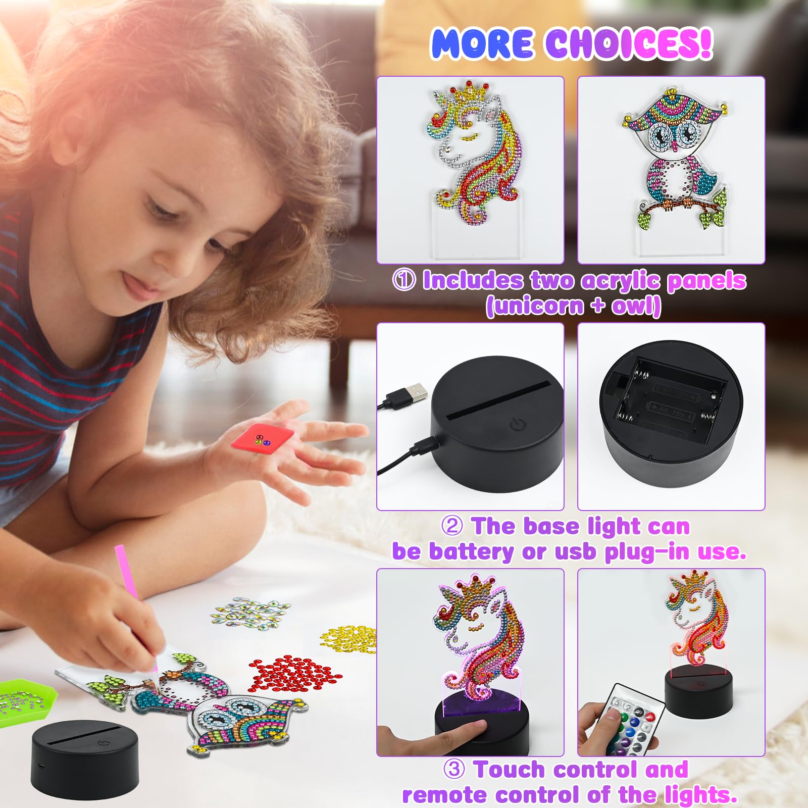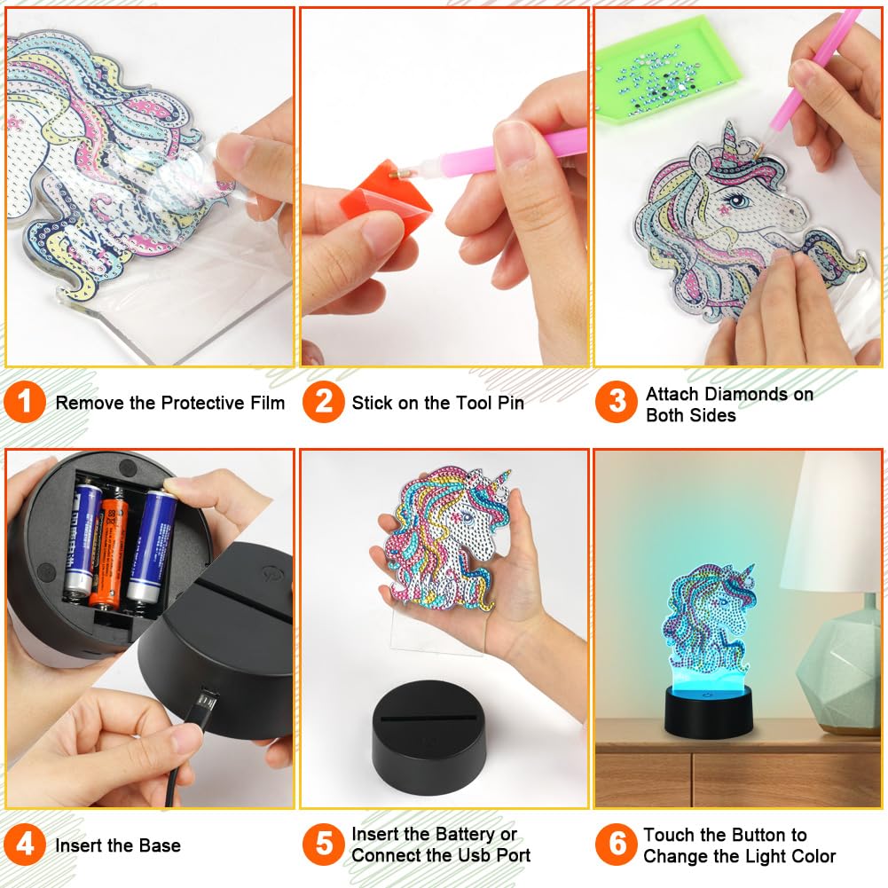Kit Bricolage Licorne Cadeau Fille Ulikey Veilleuse Licorne, 3D Diamond Painting Lampe Enfant, 16 Kit Bricolage Diamant Painting 5D Diamond Painting Veilleuse,Veilleuse Pour Enfants,Diamond Painting Lampe Licorne 3D: Veilleuse Enchantée avec Couleurs Changeantes - Pour... 🌈【Télécommande avec Mode Tactile】Les 16 couleurs différentes peuvent être changées en appuyant sur un bouton de la veilleuse ou en utilisant la télécommande. La veilleuse licorne dispose de 4 modes d'éclairage pour une luminosité réglable et est alimentée par un câble usb ou des piles (piles non fournies). 🎀【Décoration de Chambre D'enfant】La veilleuse licorne a une lumière douce et non éblouissante. Les enfants n'ont pas besoin d'utiliser de colle, il suffit de suivre les instructions relatives aux couleurs et de coller les petits diamants sur les numéros correspondants du tableau en acrylique. Lorsque les garçons et les filles ont peur du noir, la veilleuse sera leur gardien de nuit. 🎁【Cadeau pour les Enfants de plus de 5 Ans】Ce jouet licorne est facile à transporter pour les filles de 5-6-7-8 ans. C'est un cadeau parfait pour les filles à l'occasion des anniversaires, de noël, de thanksgiving, de pâques, du nouvel an ou d'autres jours importants. Veilleuse Bébé Veilleuse Enfant Veilleuse Licorne Lampe De Silicone Led...