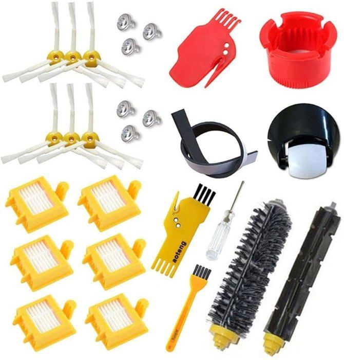 Kit d'accessoires pour aspirateur - iRobot - Roomba 800/900 - 3 filtres Accessoire pour iRobot Roomba Kit d'entretien avec Brosses-Filtres... Accessoire Officiel IRobot IRobot 3F3B600 Accessoire Kit 3 Filtres/Brosses Rooba Séries 600 Kit Entretien IRobot Roomba Accessoires pour iRobot Roomba 700 Séries, Kit de Remplacement pour iRobot Roomba 700 Séries, Brosse, Filtres HEPA 4,7 (257) 1799€ (1,12€/unité) Livraison GRATUITE ven. 28 nov. pour votre première commande Compatible avec les robots ROOMBA Série 700., Accessoire officiel iRobot ROOMBA Kit 3 brosses + 3 filtres pour ROOMBA Série 700 - tout ce dont vous avez besoin pour effectuer l’entretien régulier de votre robot ROOMBA Série 700., Le kit comprend trois filtres AeroVac série II et trois brosses latérales.