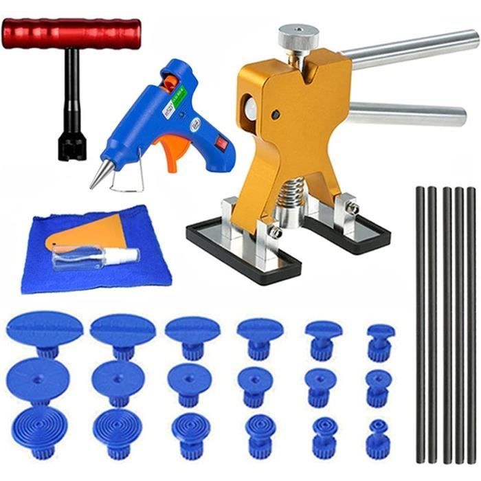 Kit Débosselage Carrosserie Debosselage Carrosserie, ,3PCS Outils De Kit Debosselage Carrosserie Débosselage Pare-brise Carrelage Outils De Debosselage Sans Peinture VEVOR 52 Pieces Kit Debosselage Carrosserie Avec Marteau Coulissant Pistolet A Colle Languettes Batons De Colle Po 89635706 ESTINK Kit d'outils de débosselage sans peinture pour carrosserie de... 【Matériaux de haute qualité】: Le kit debosselage comprend une poignée robuste en ABS, garantissant sa durabilité. La base est en caoutchouc naturel épais et haute densité, assurant l'absence de marques et d'échappement d'air, tout en offrant une forte force de succion. De plus, il n'endommagera pas la peinture. 【Debosselage Carrosserie】:Ce kit vous permet d'utiliser la succion pour ramener la carrosserie de la voiture à sa position d'origine. Alignez la ventouse sur la bosse du véhicule et appuyez fermement pour vous assurer que la ventouse adhère fermement. 【En tant kit debosselage sans peinture】:1., Assurez-vous que la ventouse carrosserie est placée sur une surface relativement plane pour permettre à l'air de s'échapper efficacement et de créer un vide., 2., Évitez d'utiliser ce produit sur des zones où la peinture est endommagée ou fissurée., 3., Sur les zones fortement irrégulières du véhicule, la méthode de succion multipoints et de traction simultanée peut être utilisée pour obtenir des résultats optimaux. 【Application multifonctionnelle】: Le kit debosselage de bosses de voiture est excellent pour éliminer les bosses sur les voitures, telles que les collisions arrière, les dépressions de porte et les déformations de la surface de la carrosserie. VEVOR Tire Clou Carrosserie 3 kW Kit Poste de Debosselage Soudeuse par...